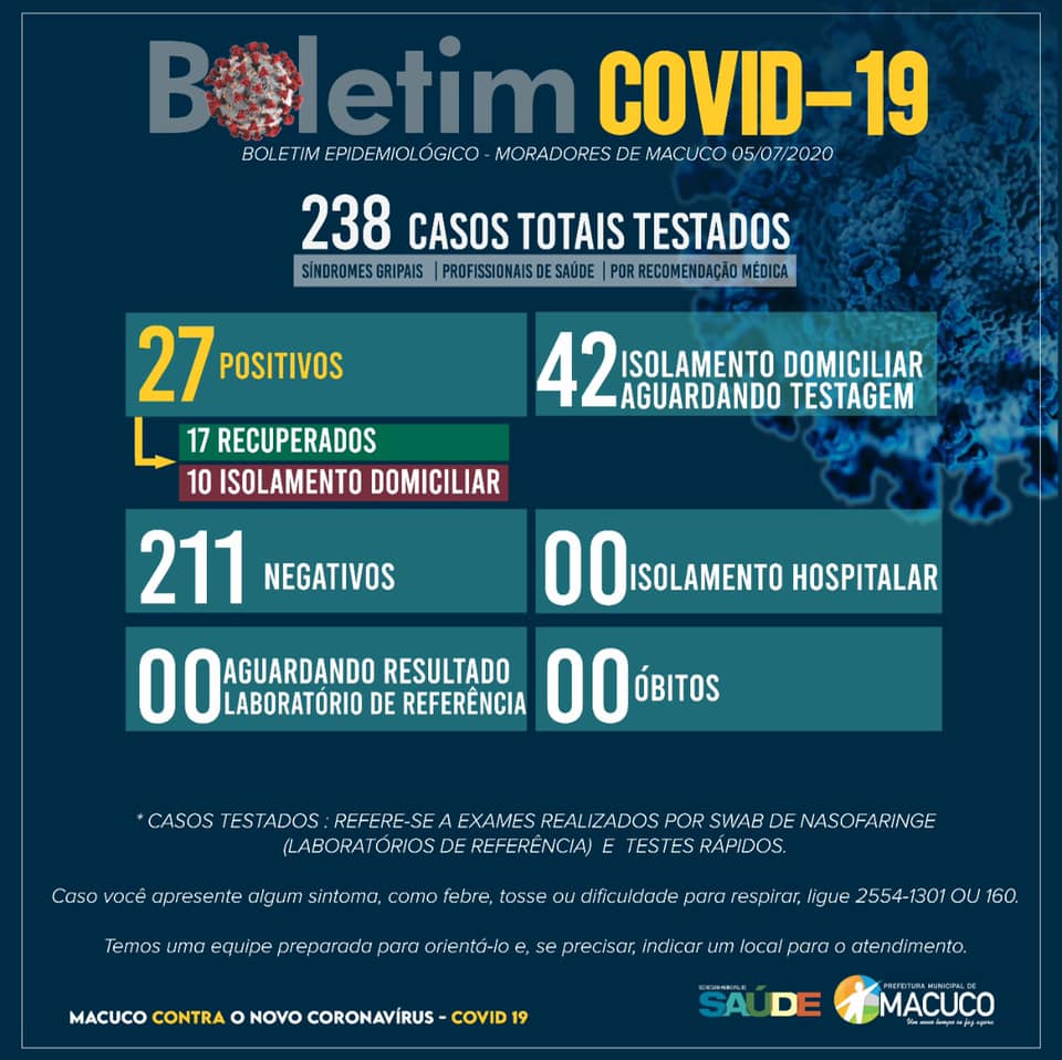 Boletim atualizado sobre o COVID-19 em Macuco – 05/07