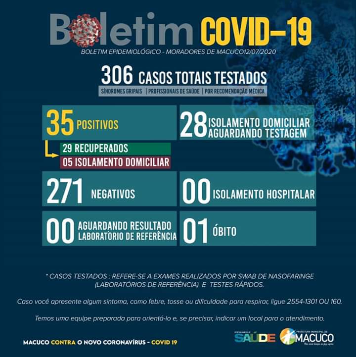 Boletim atualizado sobre o COVID-19 em Macuco – 12/07