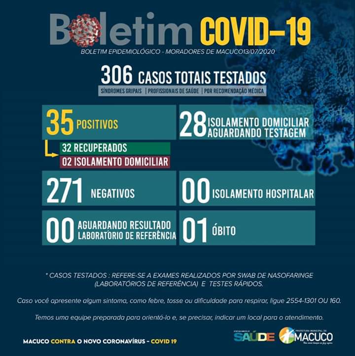 Boletim atualizado sobre o COVID-19 em Macuco – 13/07