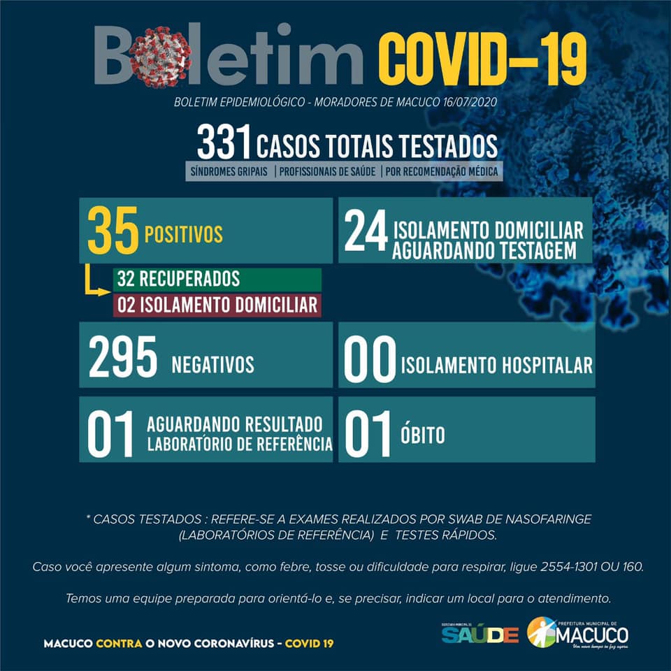 Boletim atualizado sobre o COVID-19 em Macuco – 16/07