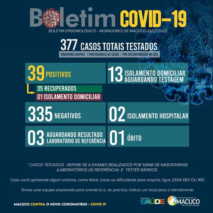 Boletim atualizado sobre o COVID-19 em Macuco – 23/07
