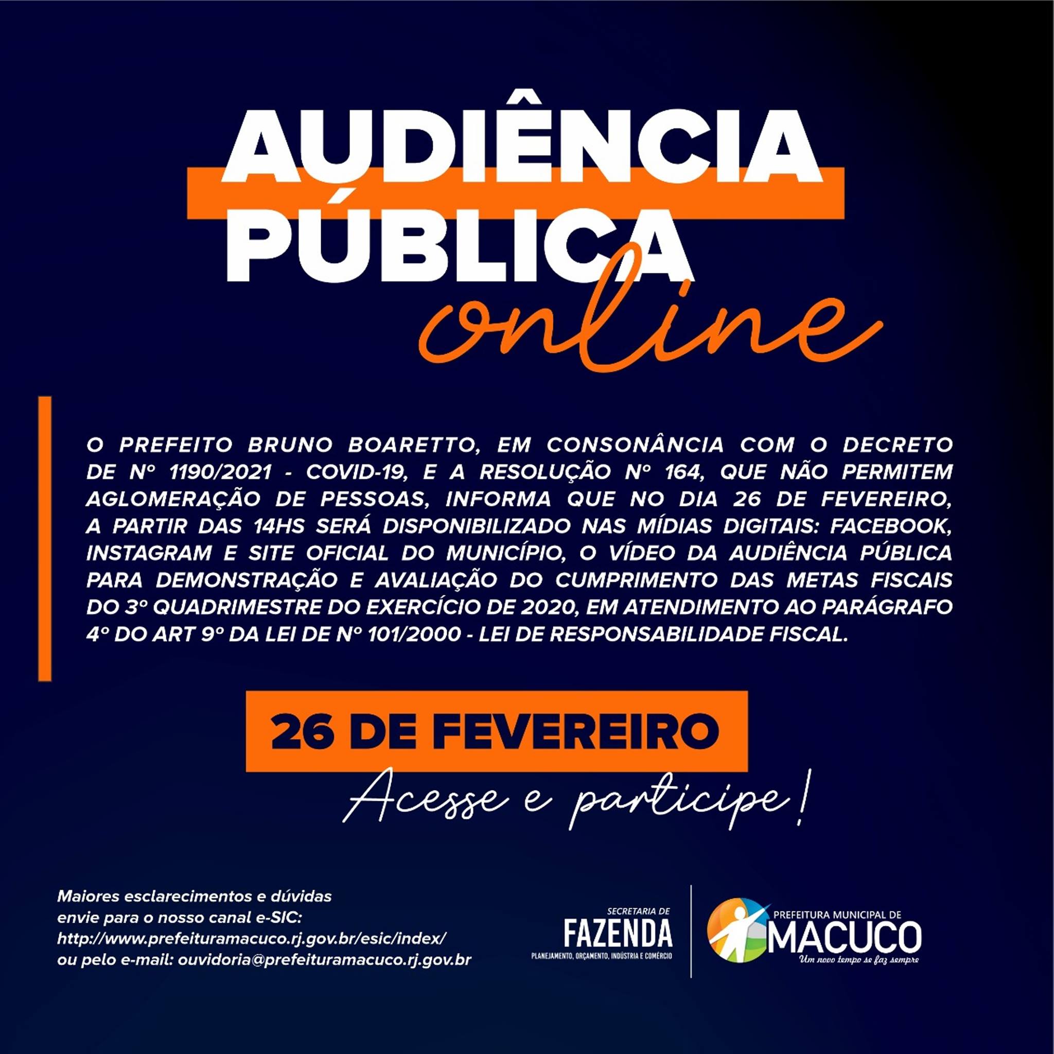 Clique a acesse a audiência! Seguindo às determinações legais e também com o intuito de demonstrar a transparência e idoneidade…
