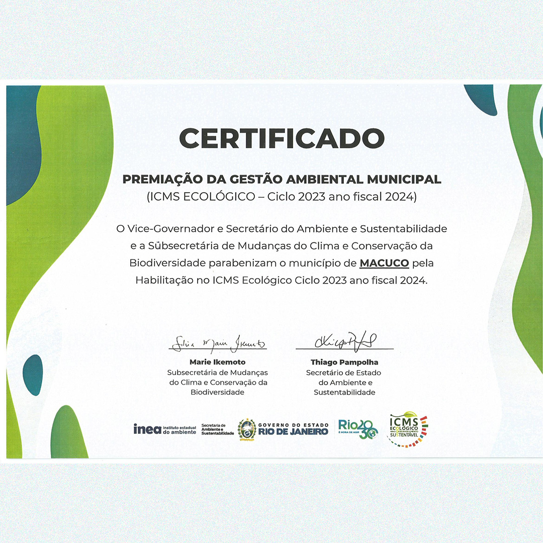 Macuco recebe Certificado de Habilitação no ICMS Ecológico