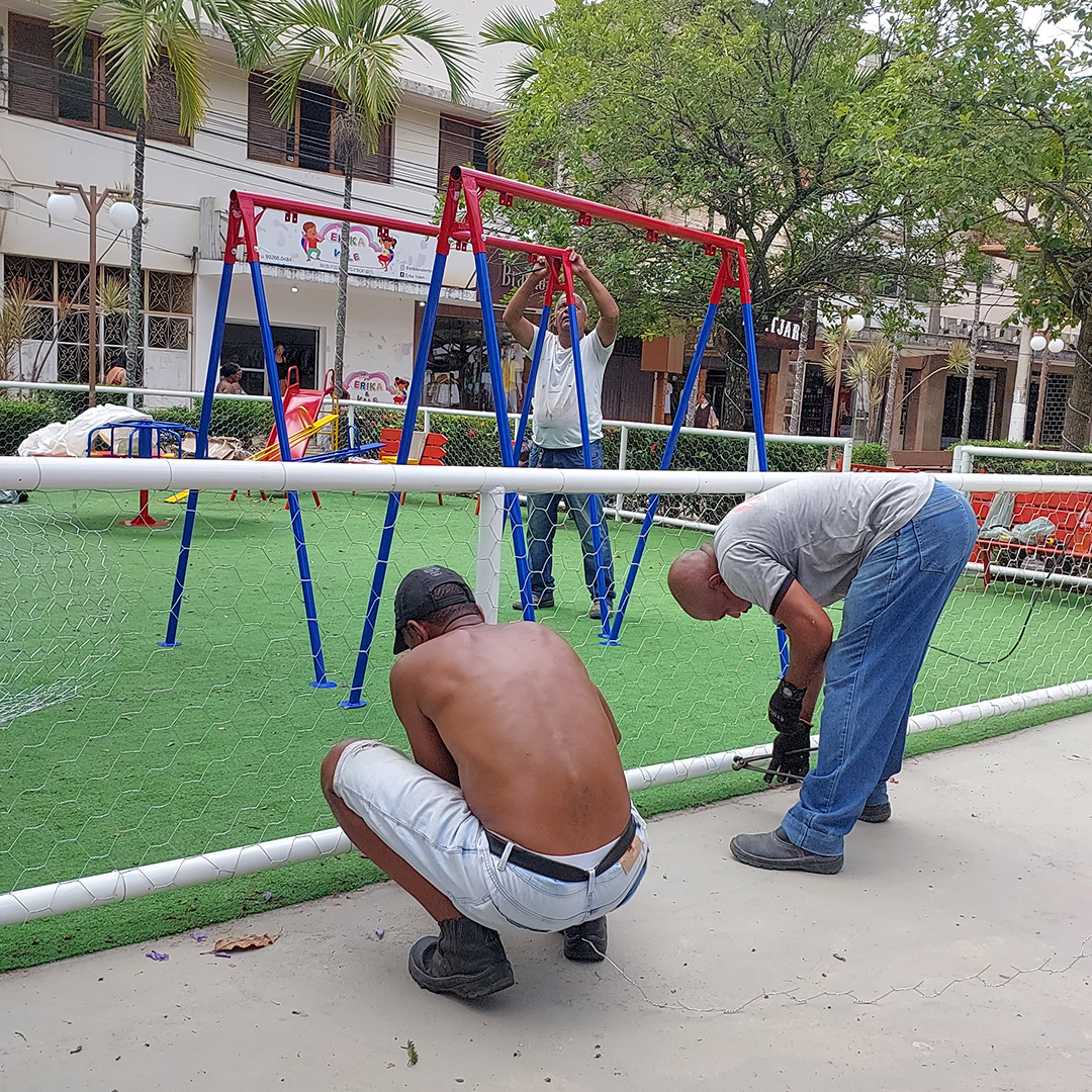 Parquinho infantil e áreas de convívio ganham forma no centro urbano Seguem em ritmo acelerado as obras para revitalizar parte…
