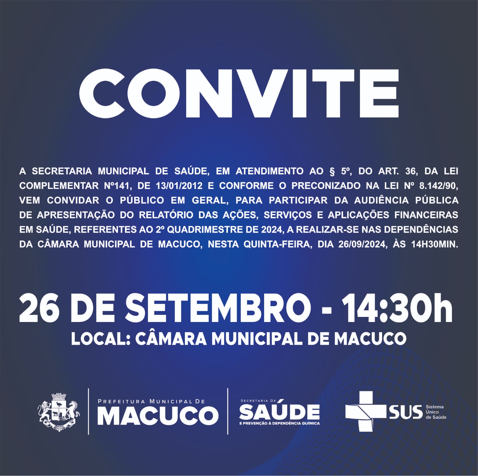 Convite para Audiência Pública da Saúde no dia 26/09/2024