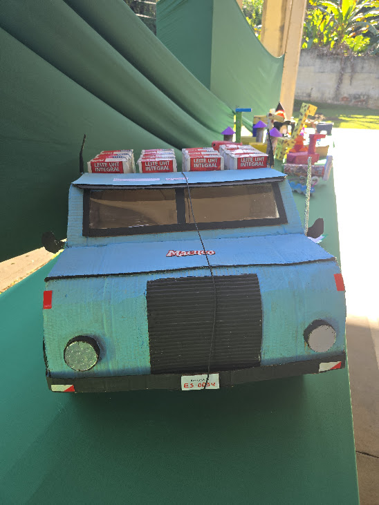 E por falar em criatividade, bom demais poder observar com calma esse carrinho reciclado carregando caixas de leite reaproveitáveis