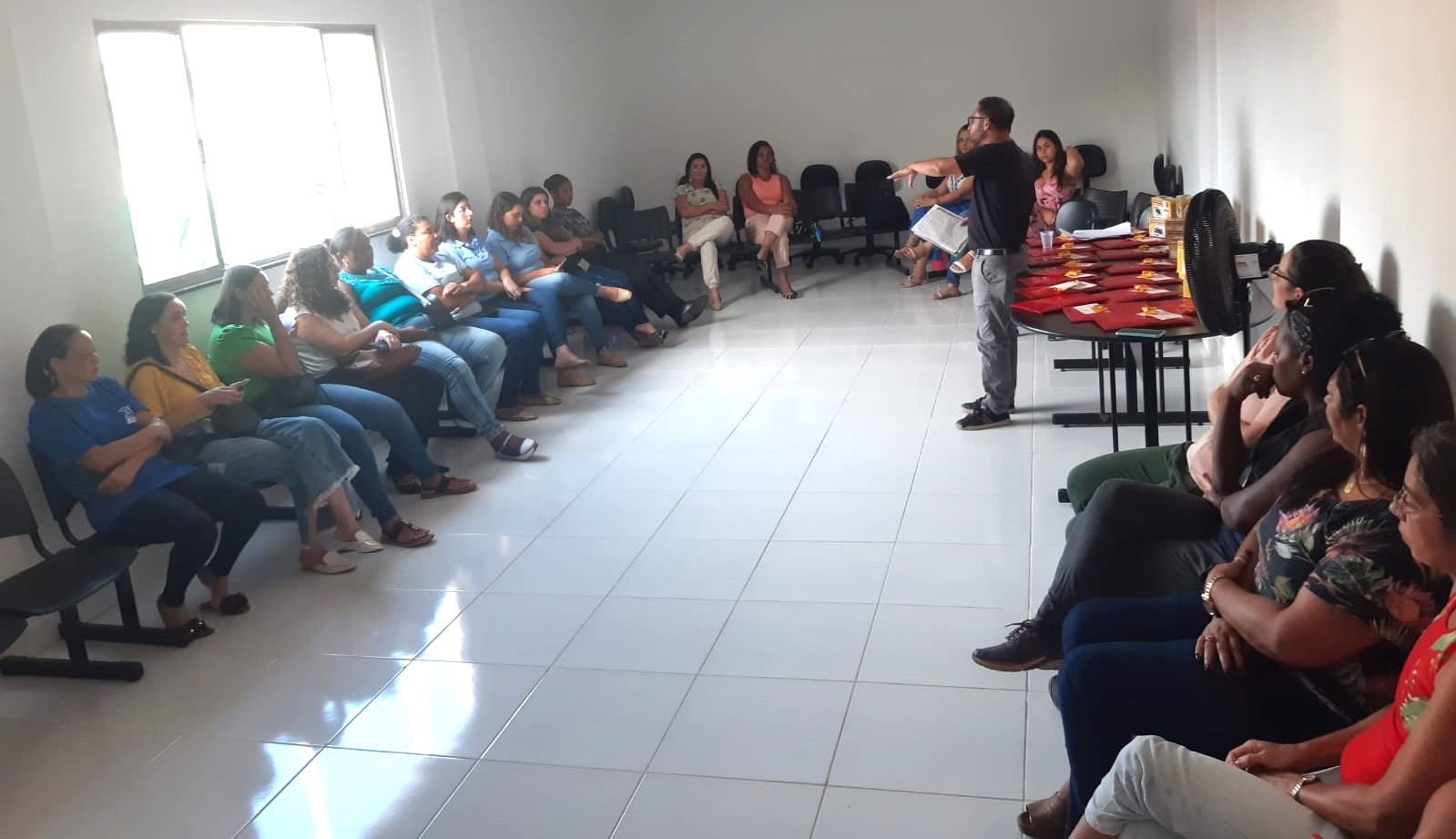 Antes da entrega dos kits, um bate-papo informal entre secretária e agentes serviu para estreitar os laços entre profissionais e entidade