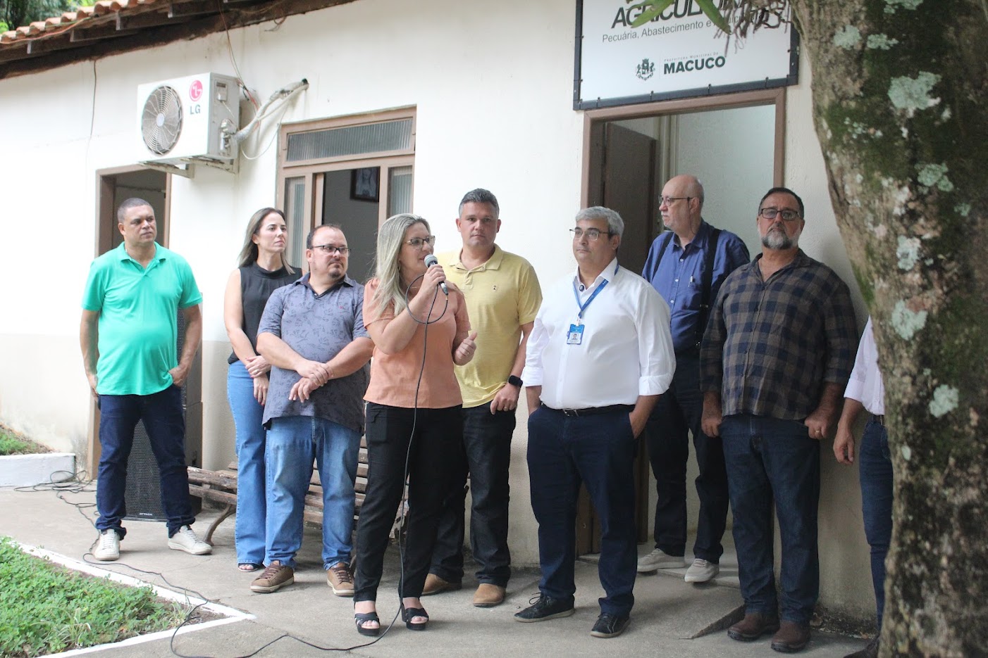 Secretários do Governo Municipal, técnicos do setor agrícola e representante da Cooperativa de Macuco acompanhando a solenidade de inauguração