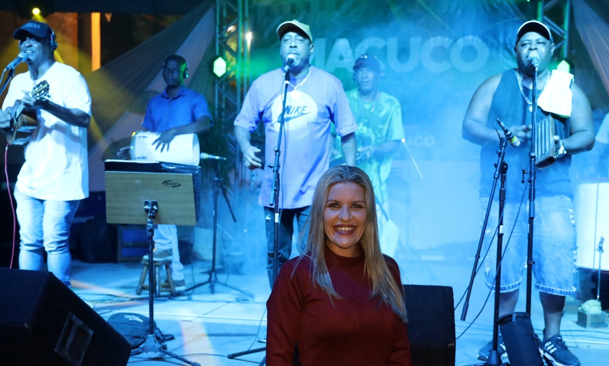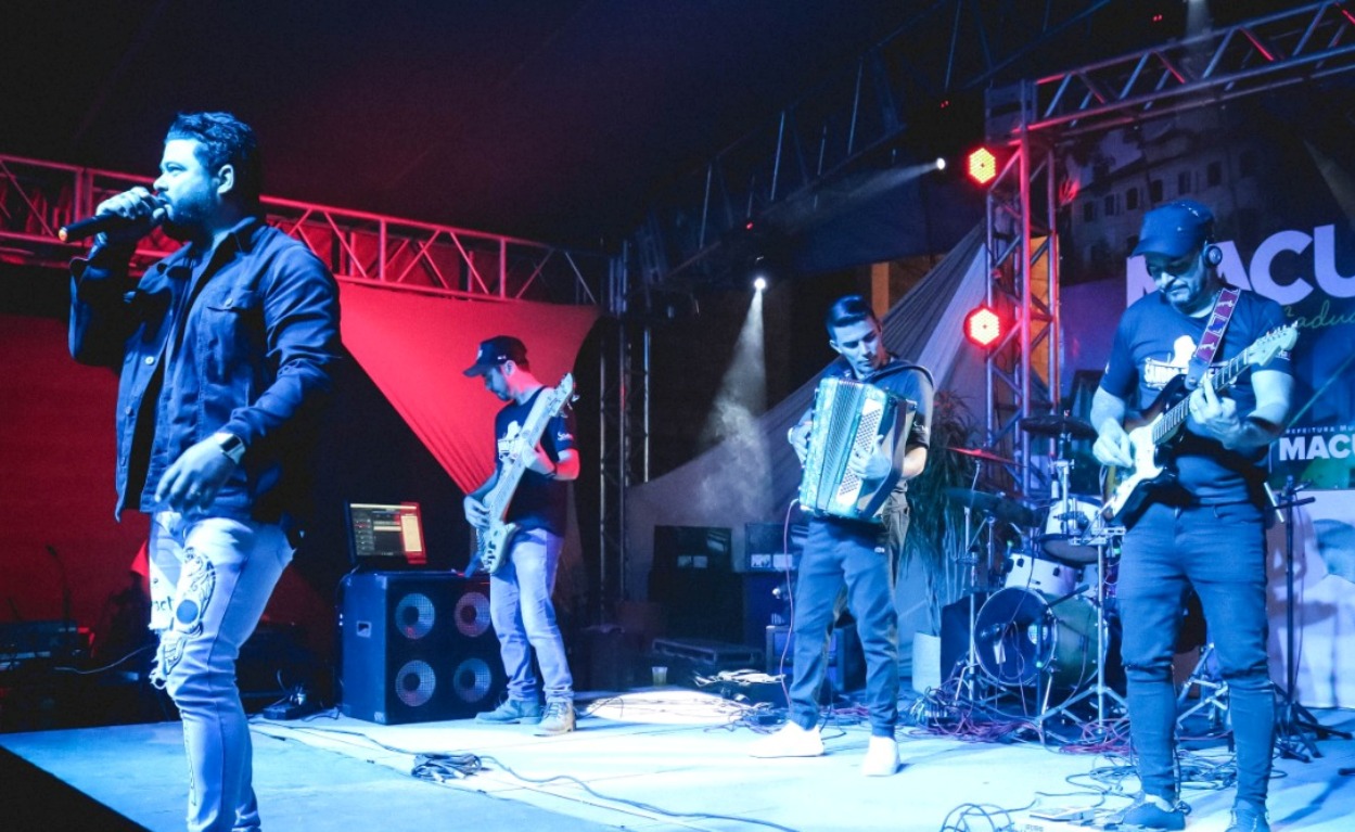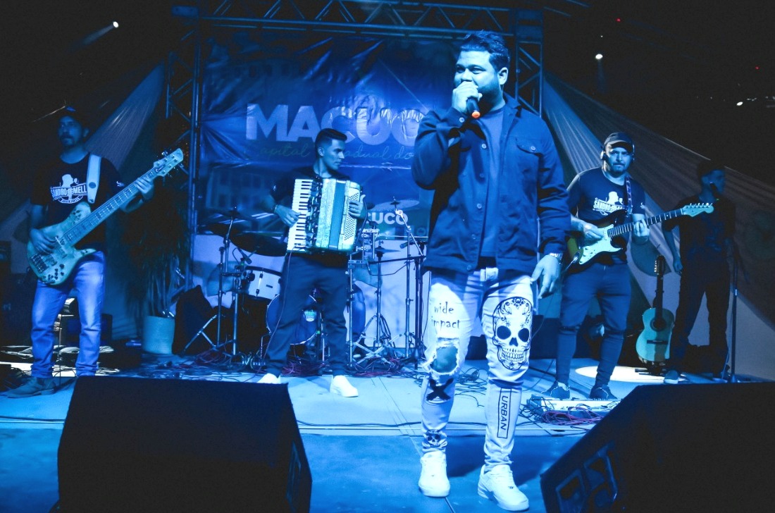 Sandro Melo e banda num dos momentos em que exibiam o talento e qualidade musical aos macuquenses e visitantes