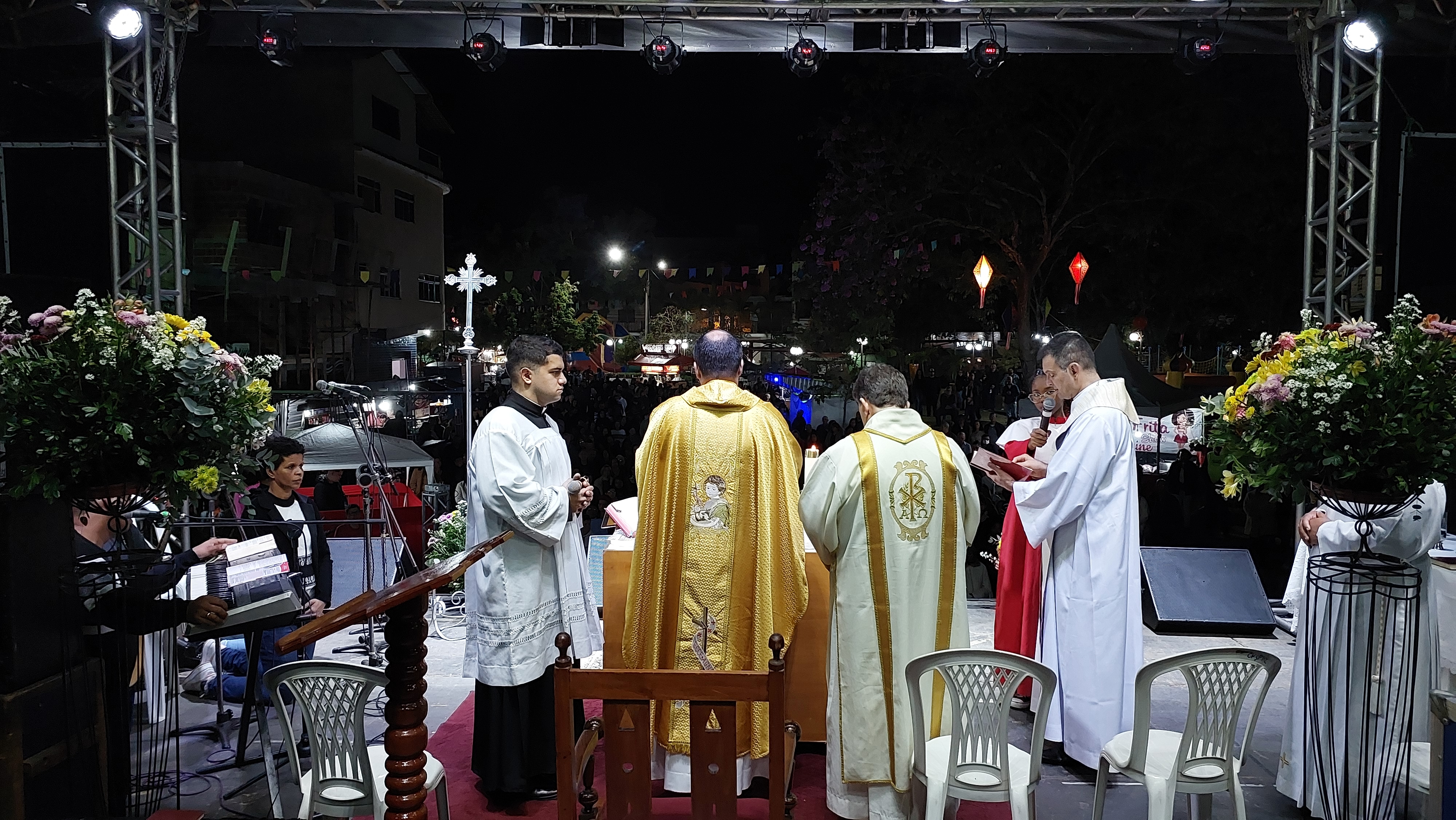 Momentos de reflexão e elevação espiritual na missa solene conduzida pelo Padre Fernando Pacheco no dia do Padroeiro São João Batista