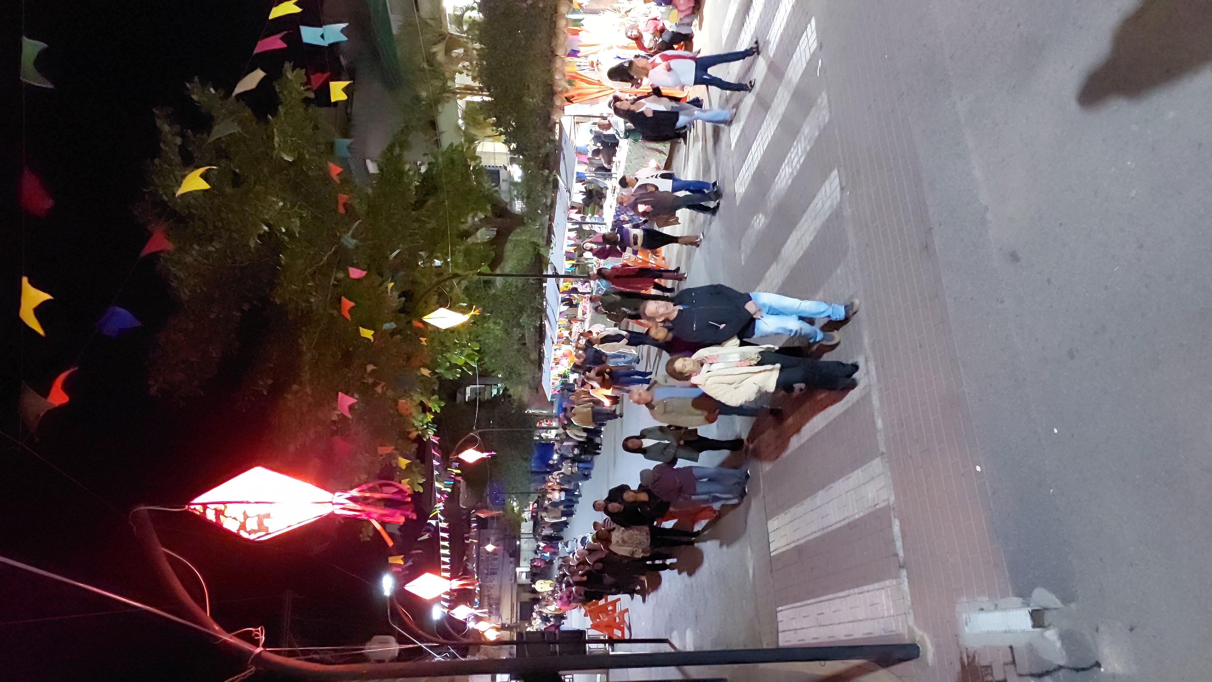 Duas filas no formato indiano se estenderam pelas ruas do centro de Macuco para acompanhar a Procissão Luminosa do Padroeiro
