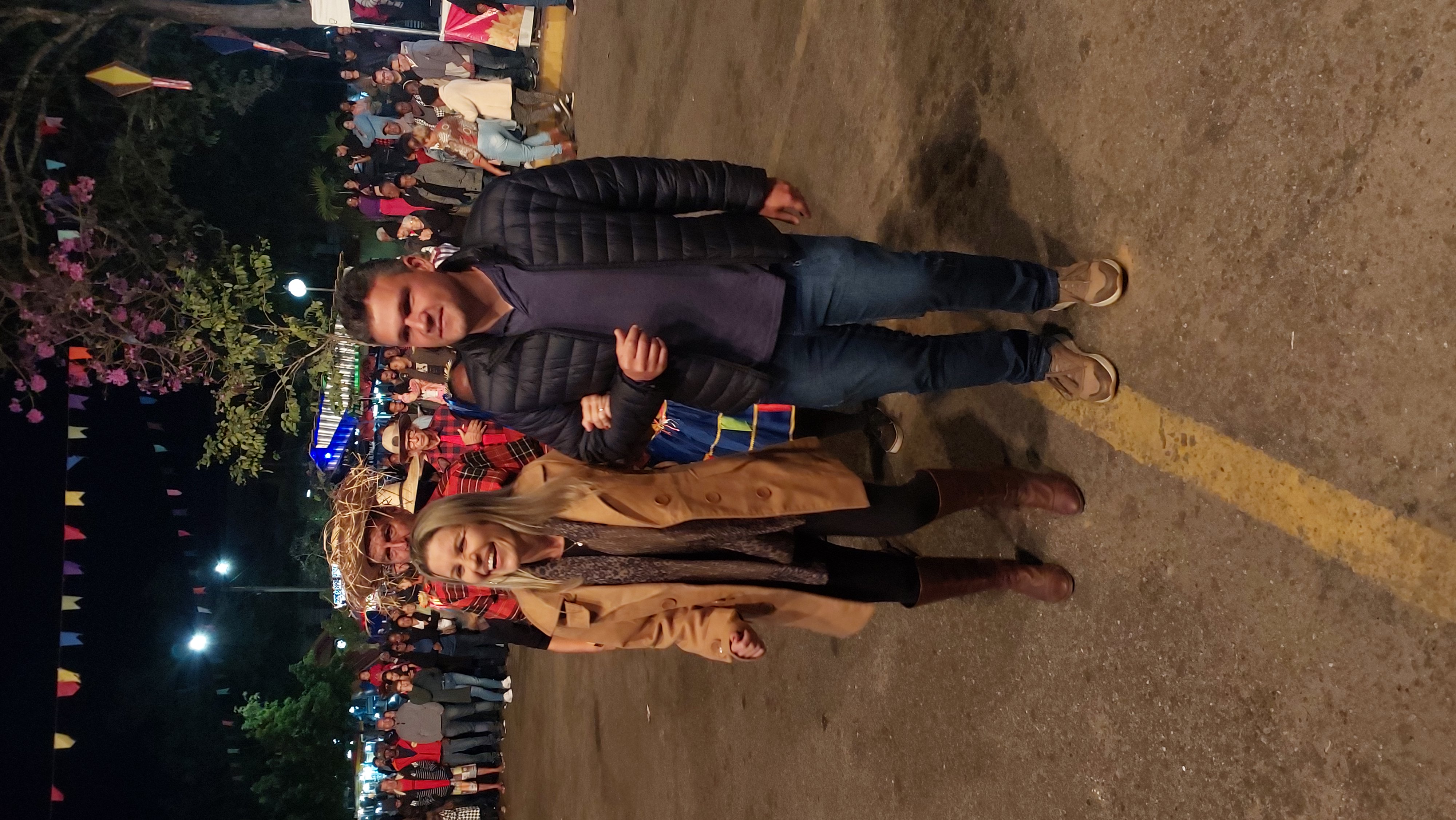 Com muito bom humor, a prefeita Michelle Bianchini e o esposo e secretário de Governo João Vitor engrossaram as fileiras da Quadrilha Junina da Terceira Idade