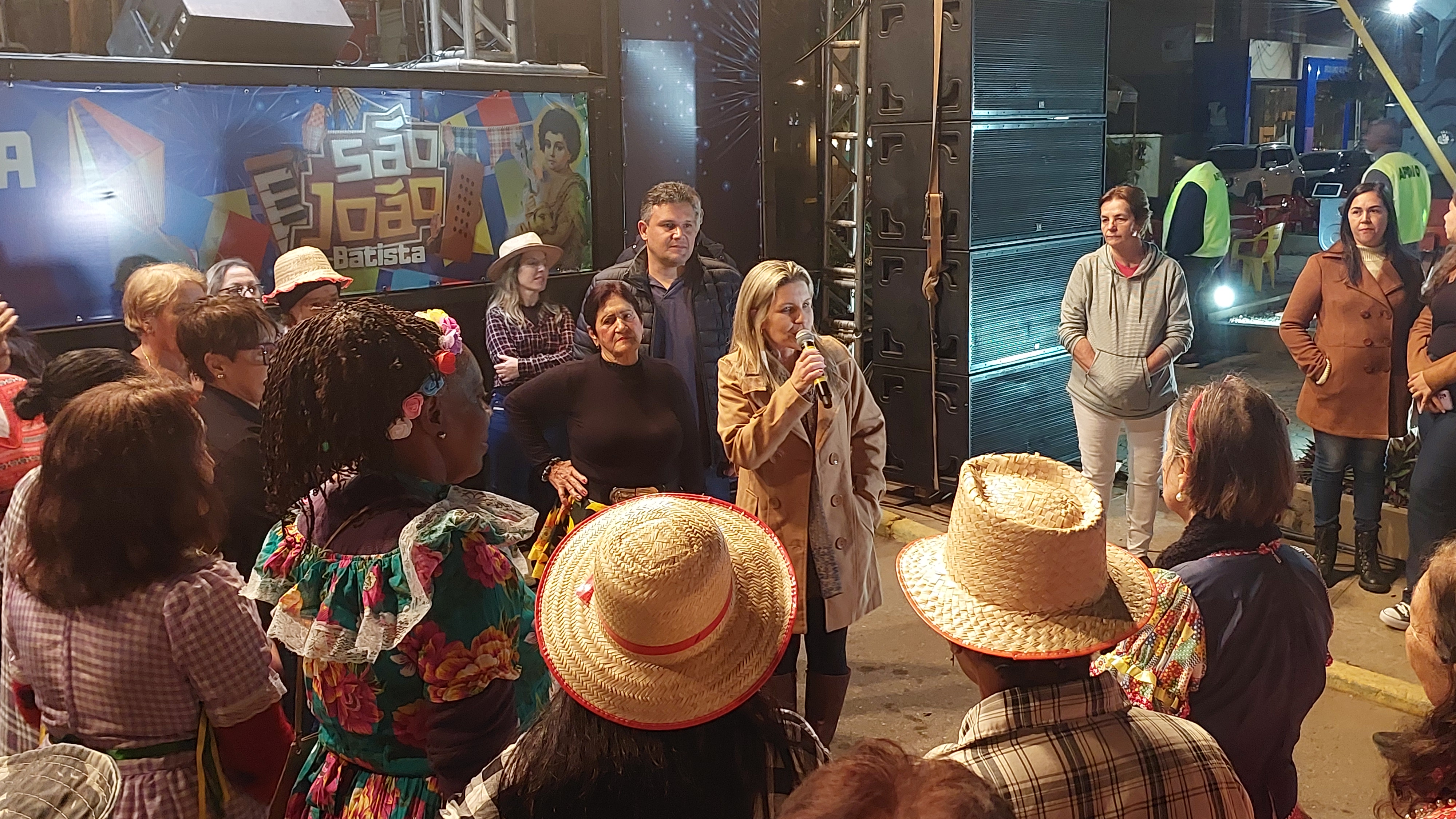 Observada pelo secretário de Governo João Vitor Pontes, a prefeita Michelle Bianchini teceu elogios aos componentes da quadrilha