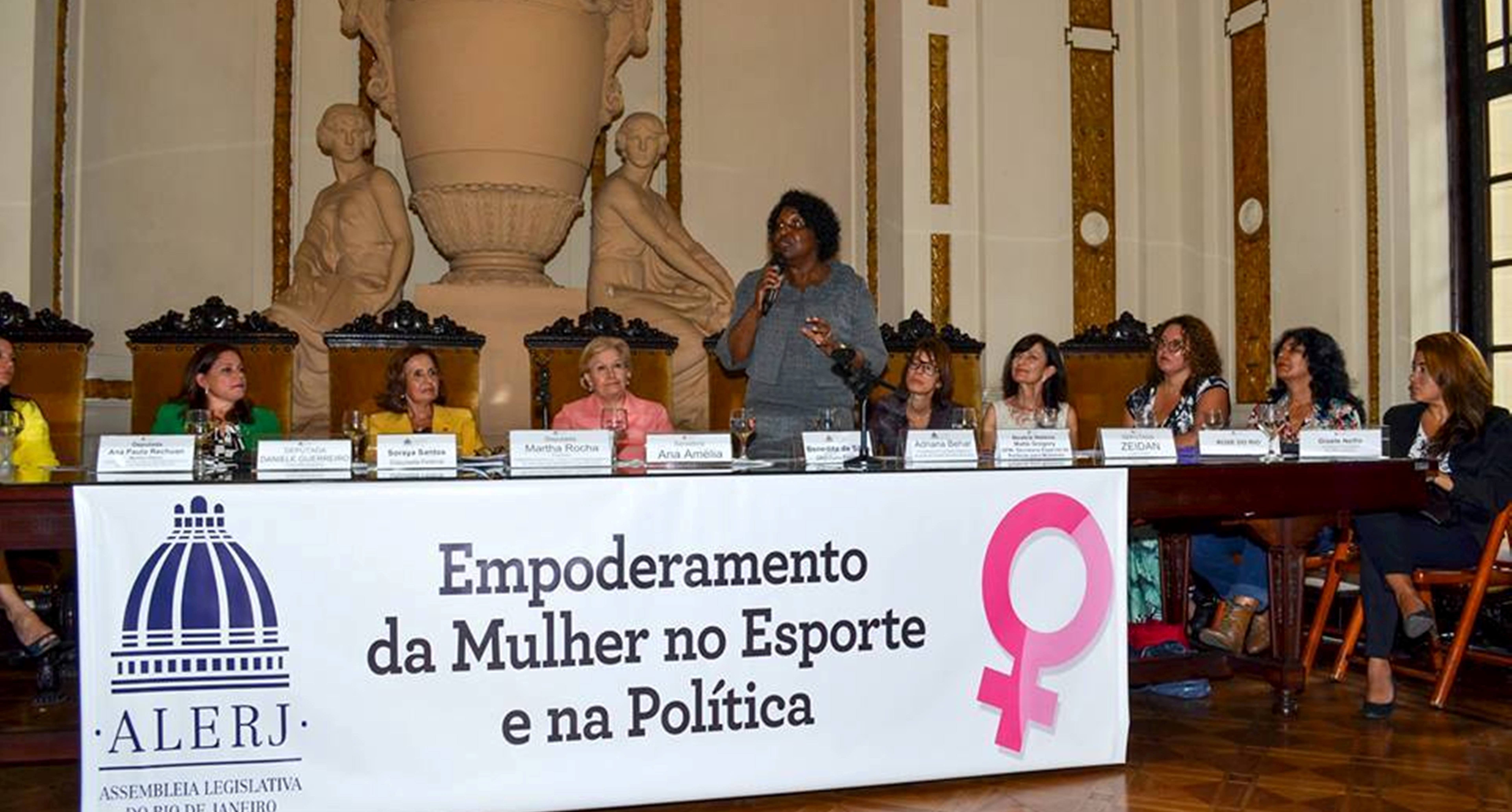 Instalada no mês de setembro, a Comissão Especial para o Empoderamento da Mulher no Esporte e na Política recebeu adesão das deputadas da Assembleia Legislativa do Estado do Rio de Janeiro (ALERJ). Presidente, vice-presidente e relatora, respectivamente, as parlamentares Martha Rocha (PSD), Daniele Guerreiro (PMDB) e Zeidan (PT) lideram o bloco feminino que defende o tema, inspirado no projeto de lei nº 515, em tramitação no Senado Federal, cujo texto propõe que 2016 seja considerado o ano do empoderamento feminino na política e no esporte.