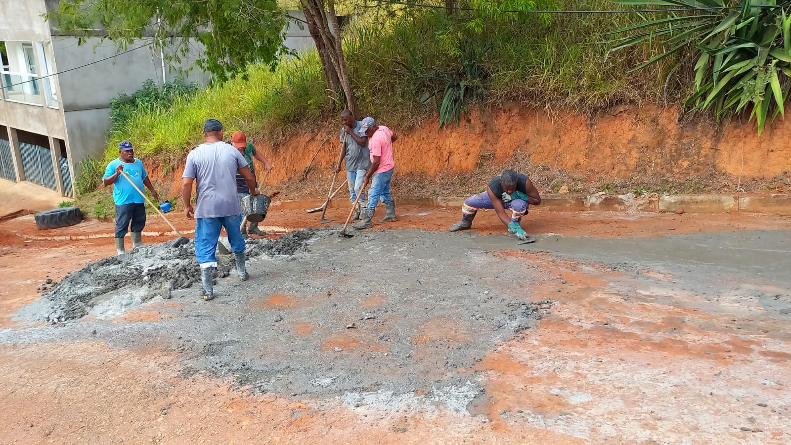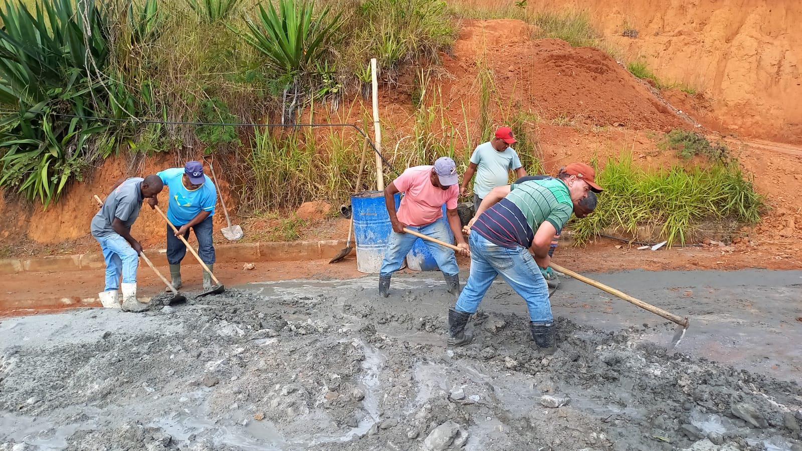Mais uma imagem que comprova a união dos servidores da Secretaria de Obras na realização da concretagem