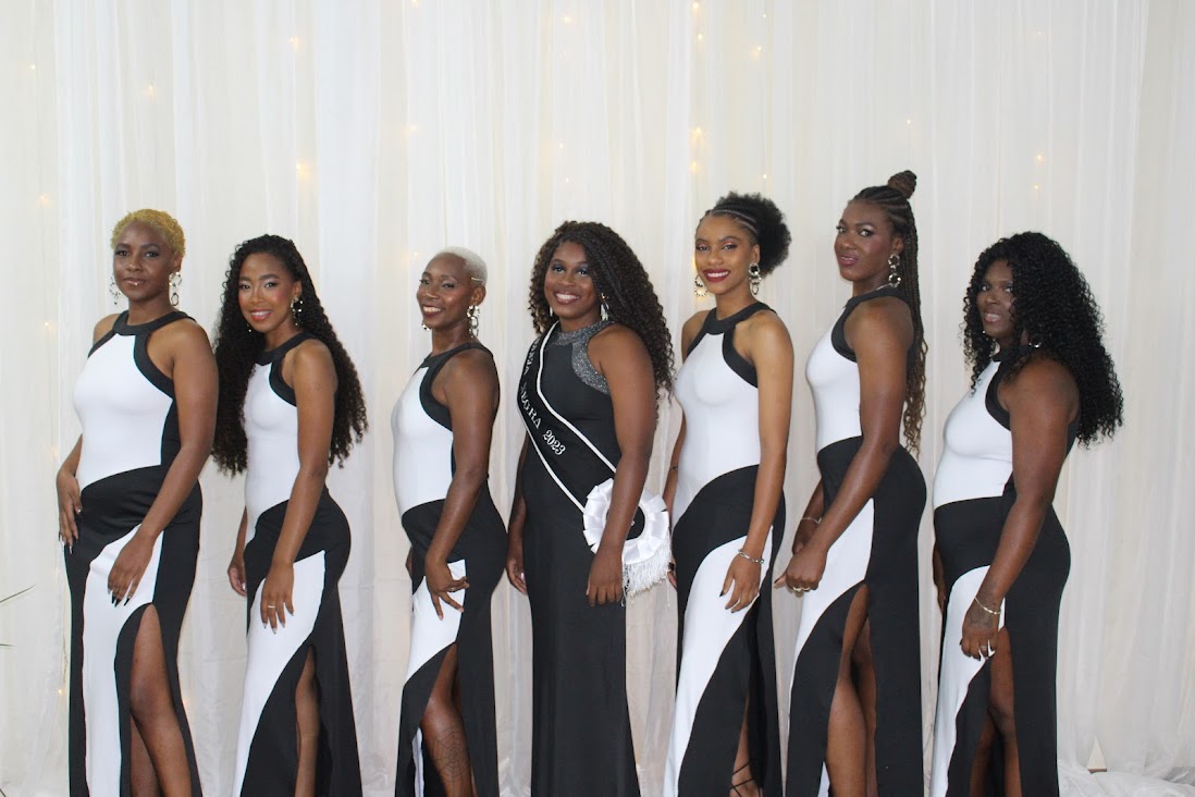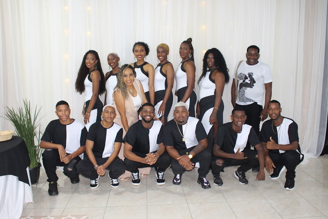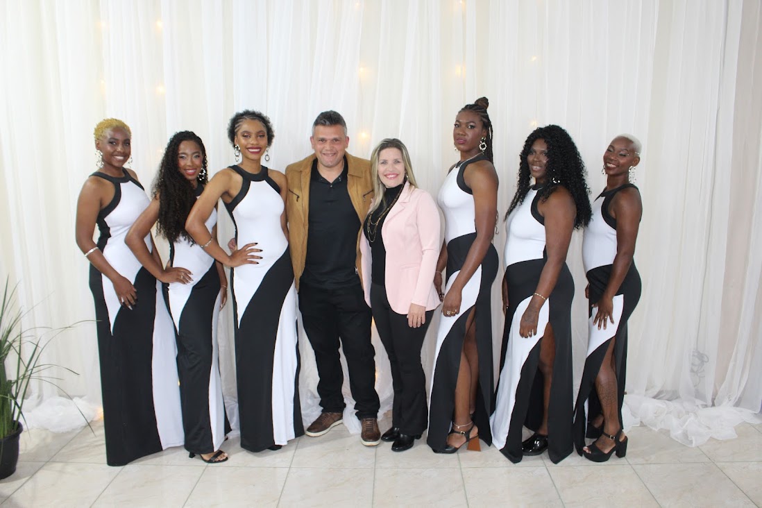 A diretora de Cultura, Micaelle Mattos, um dos organizadores, Santiago Bombom, com os concorrentes do Beleza Negra 2024