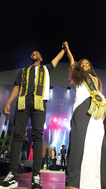 O semblante de alegria e contentamento do casal Kaylane e João Gabriel, eleito Rei e Rainha da Beleza Negra 2024 em Macuco