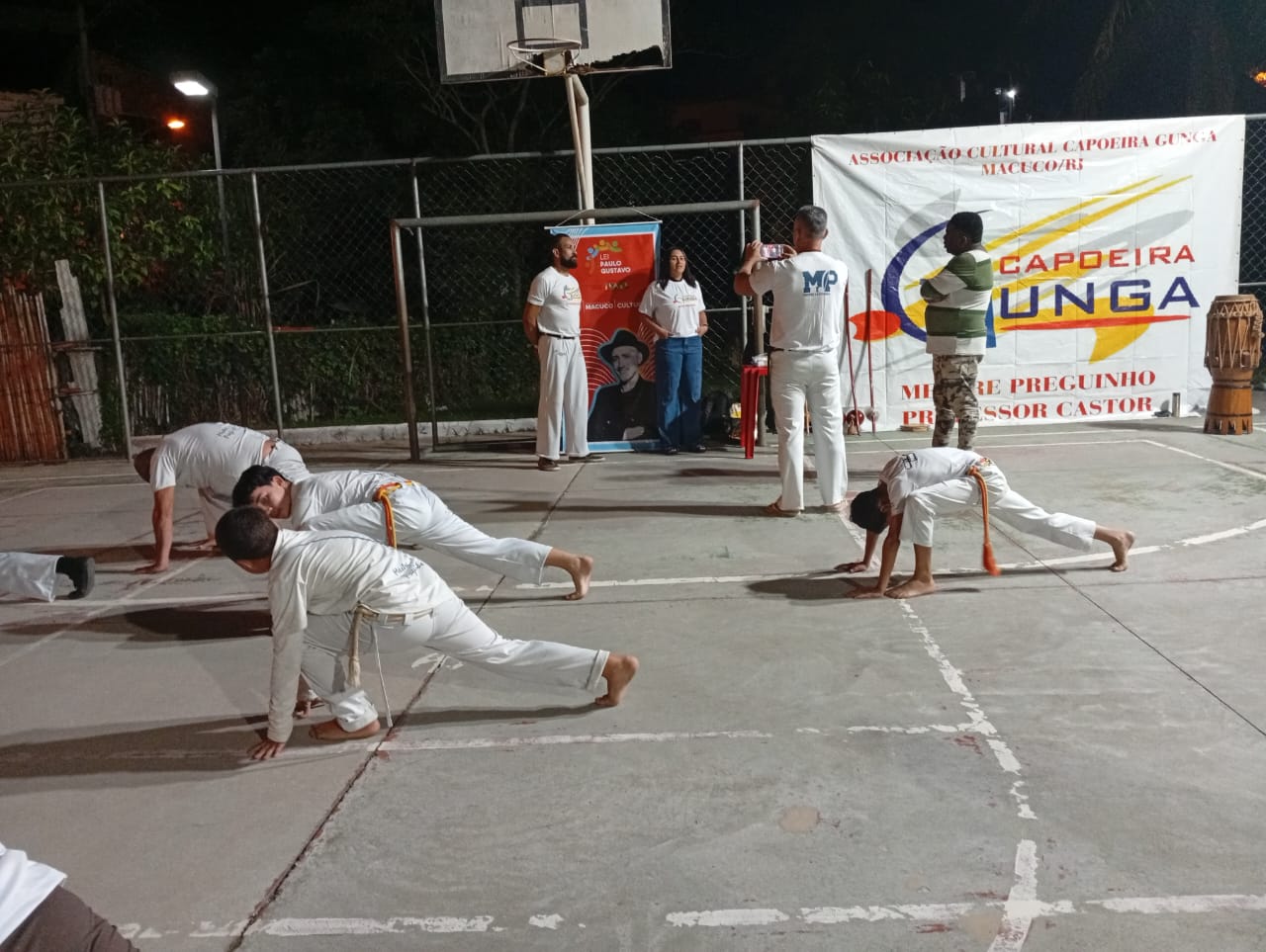 Mestres e alunos se apresentaram para o público numa das quadras esportivas de Macuco, deixando clara a integração cultural proposta pela mencionada lei federal
