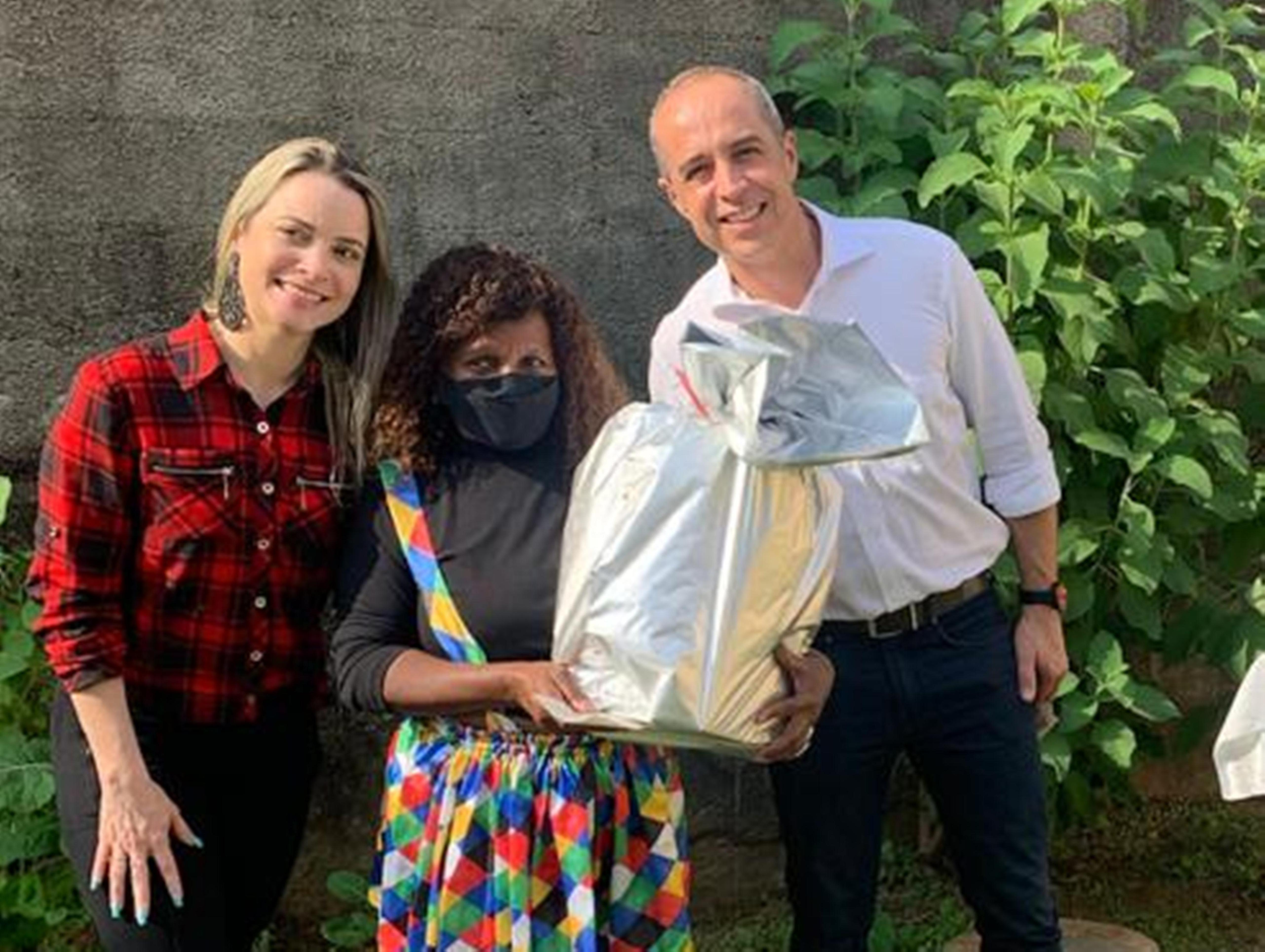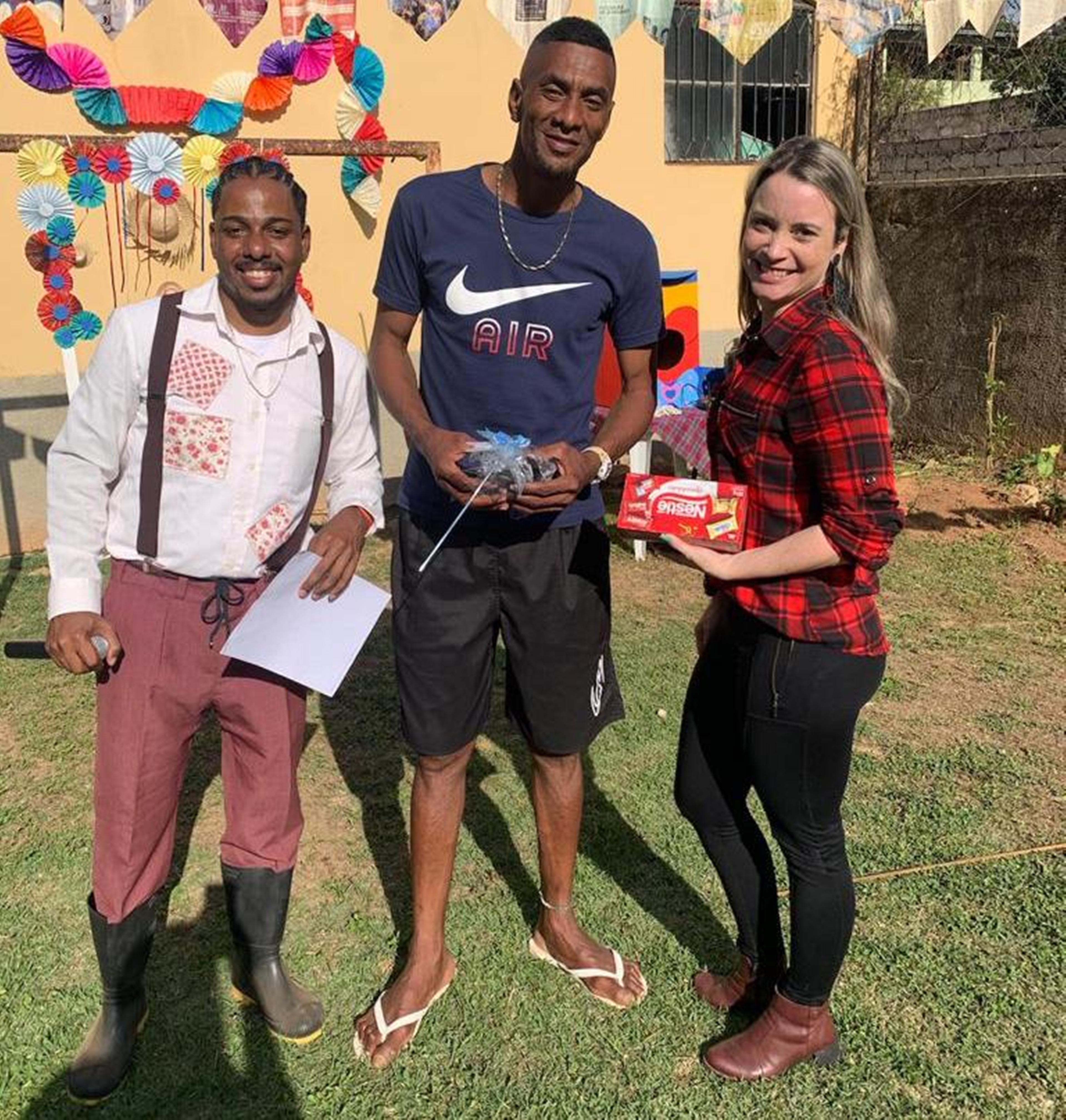 Juninho e Marlise entregaram um dos presentes sorteados entre os participantes da festinha