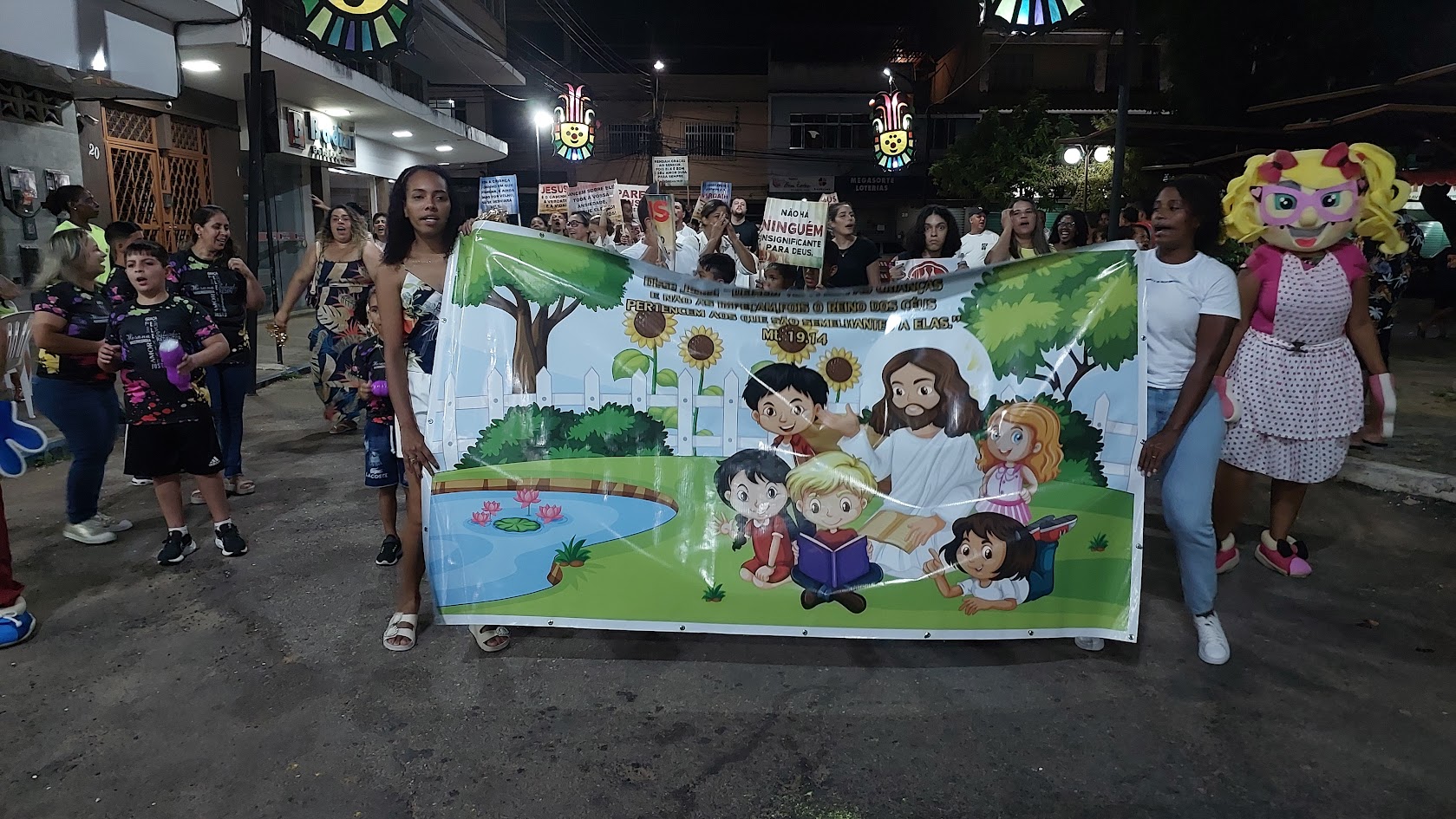 Portando cartazes com mensagens bíblicas, os componentes do Bloco Maranata deixaram seu recado espiritual na avenida