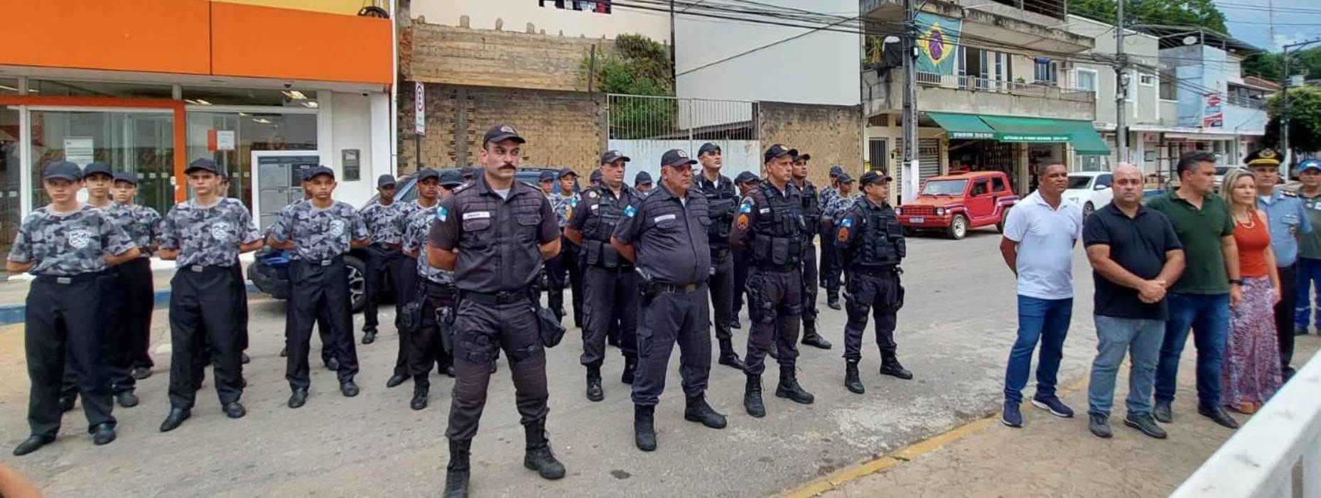 Na sequência – após a apresentação de uma fração do contingente policial que atua na cidade, feita pelo comandante da 3ª Companhia da PM, Tenente Ramos –, os discursos tiveram início com o secretário de Governo João Vitor Pontes, que destacou o empenho incansável da Gestão Municipal para viabilizar a mudança de local para o DPO, declarando que a Polícia Militar é quase um braço da municipalidade, diante da afinidade e parcerias, comentou que um dia quase se tornou um profissional da força de segurança e se mostrou otimista quanto à inauguração do hospital local em breve.