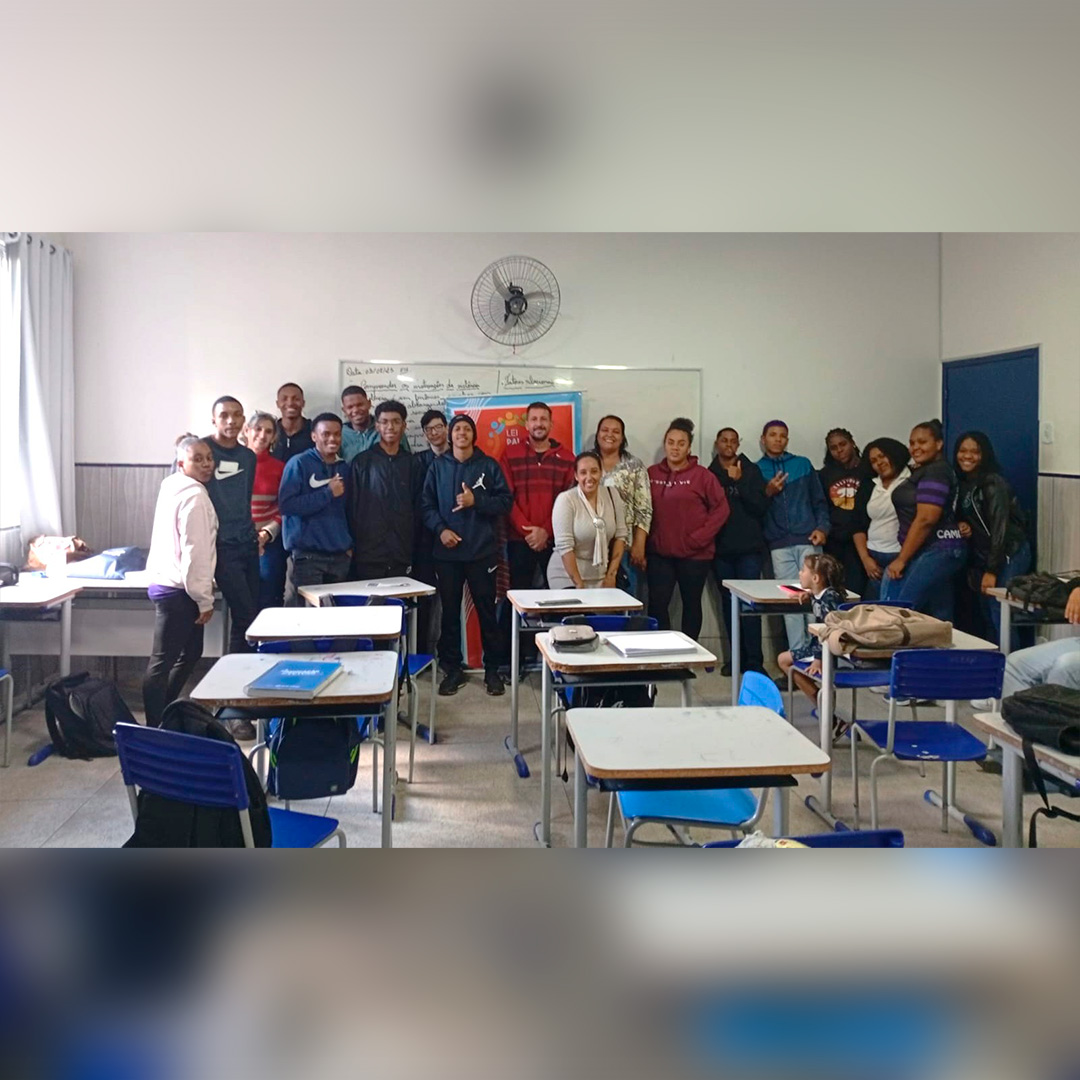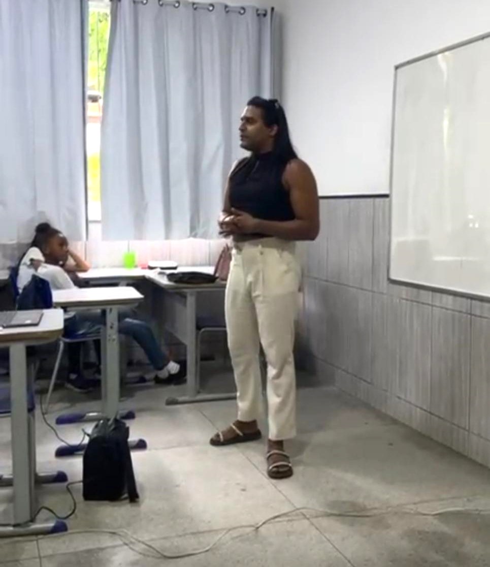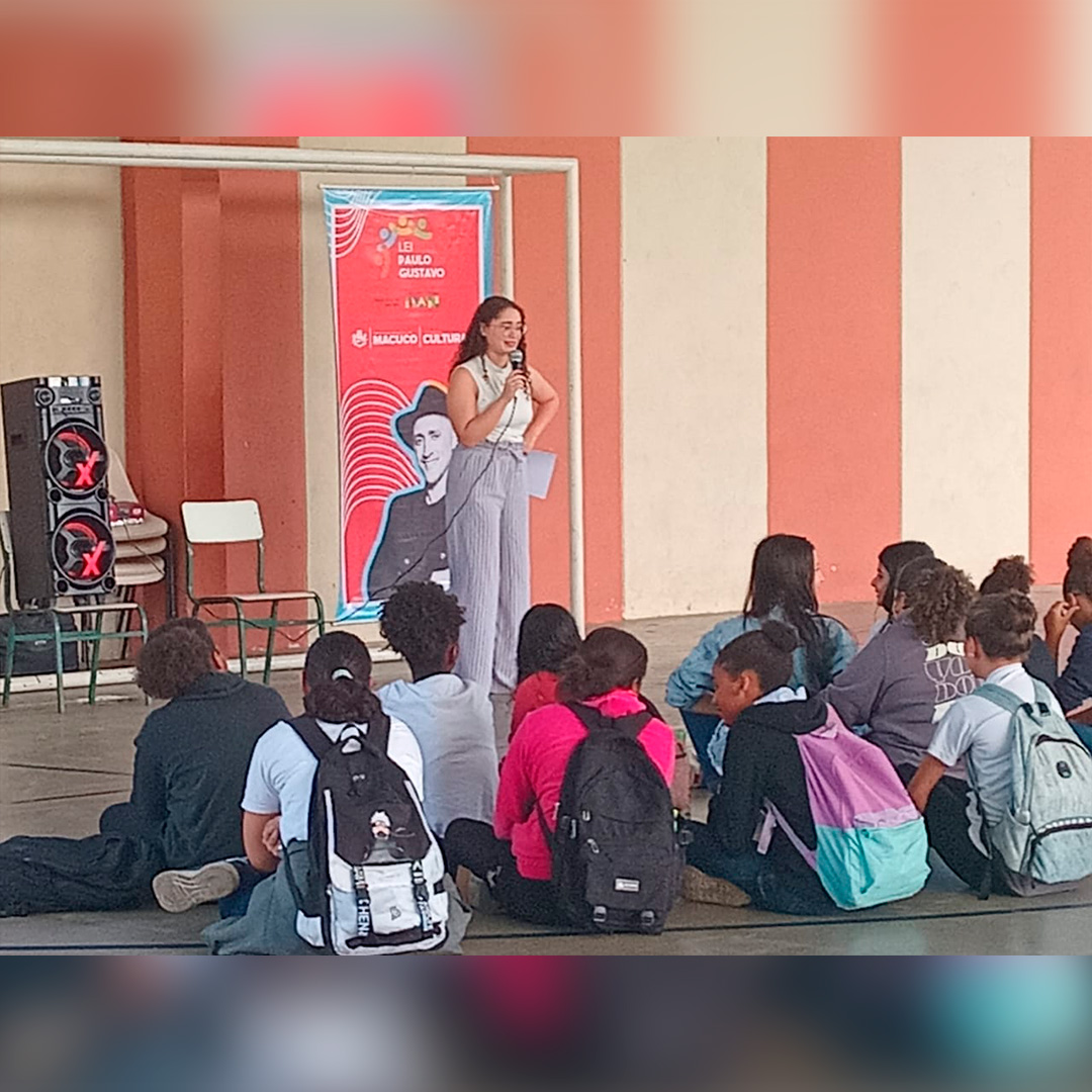 Pamela Gomes Rodrigues, com o projeto Bloom Verso, interagindo com os estudantes do Colégio Estadual Farmacêutico Rodolfo Albino O Colégio…