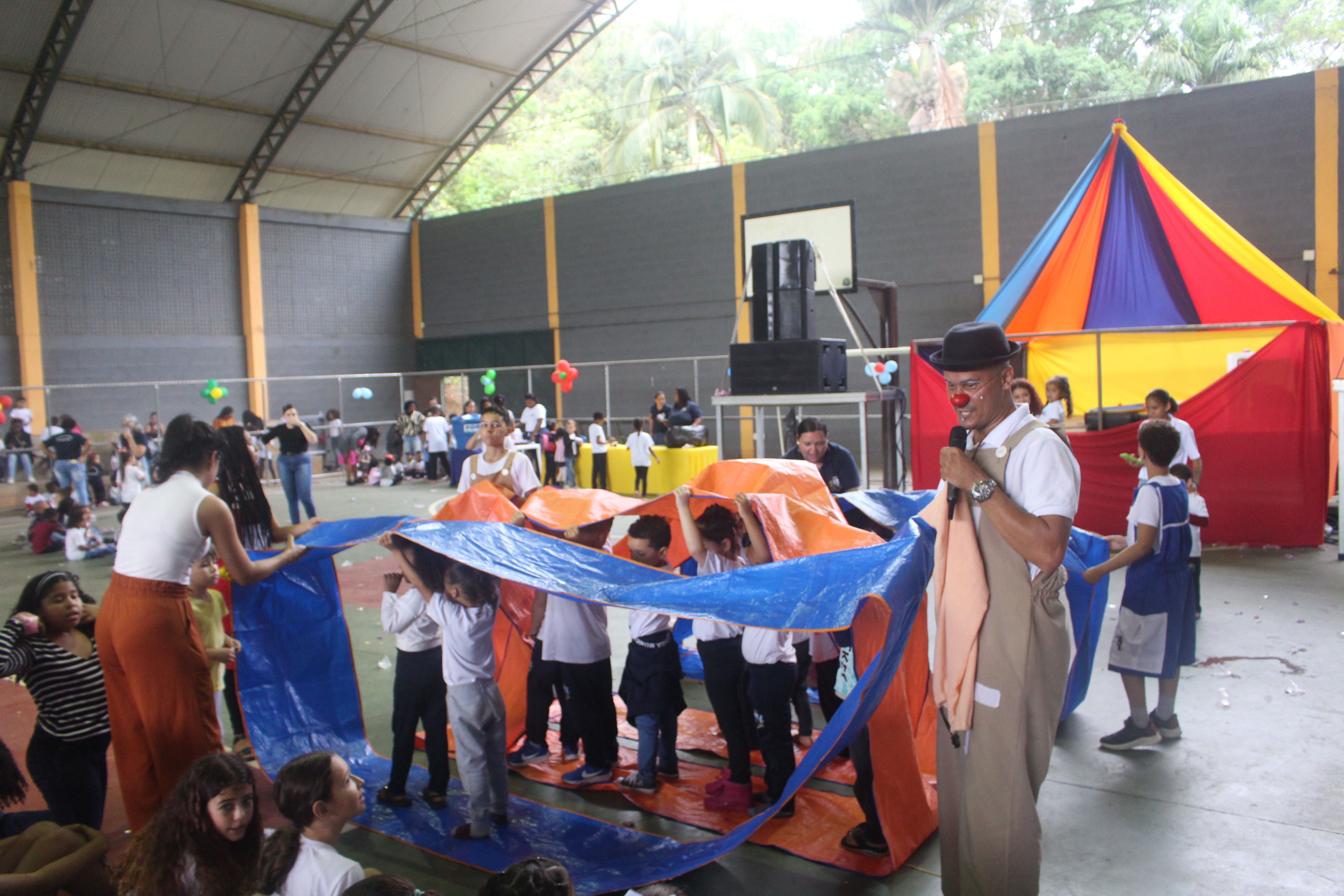Velho conhecido da garotada de Macuco, o Palhaço Tatá comandou as brincadeiras com a empolgada garotada