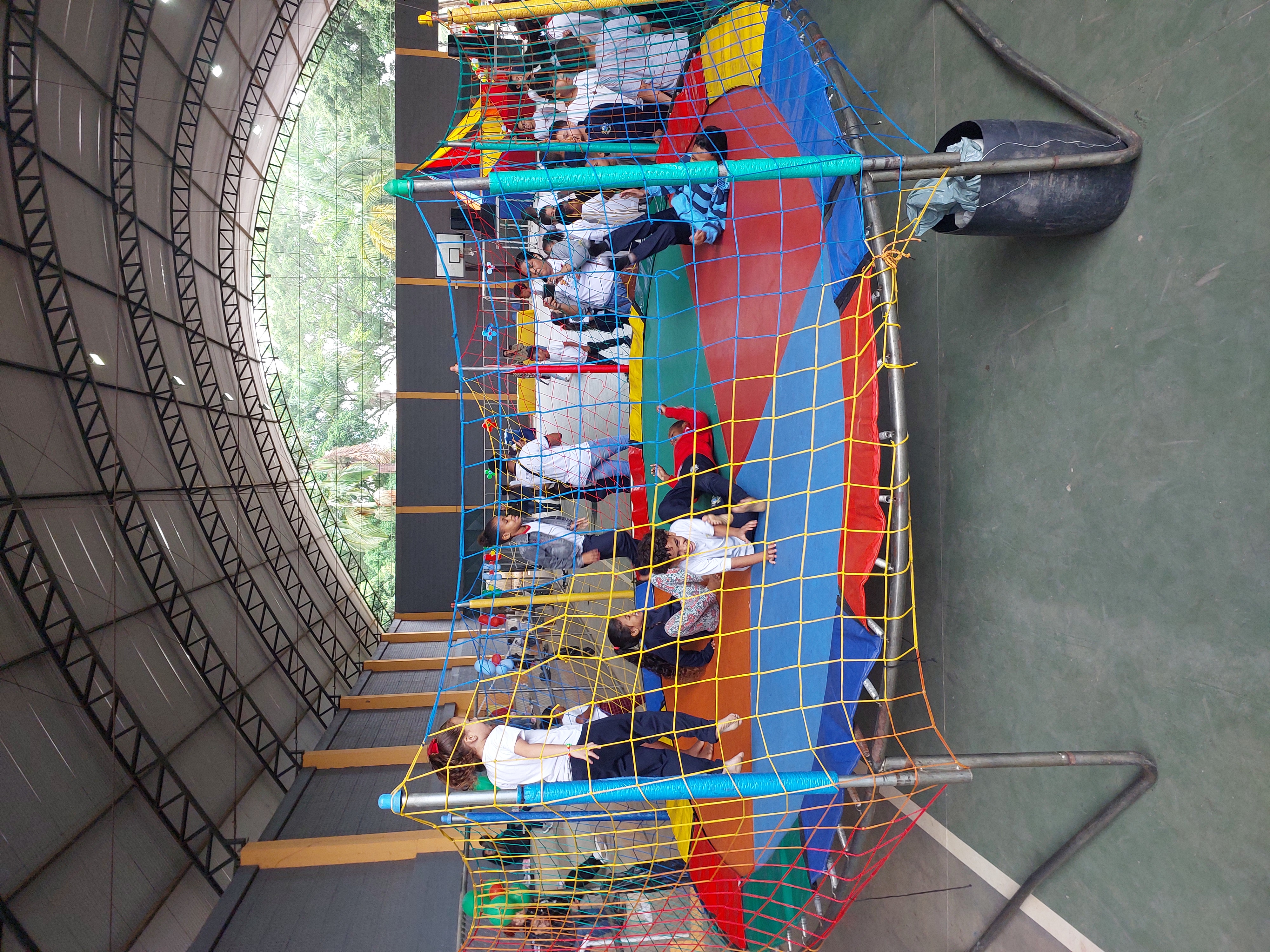Mais uma das brincadeiras propostas pelo Palhaço Tatá, que conseguiu envolver meninas e meninos e os colocou em sintonia