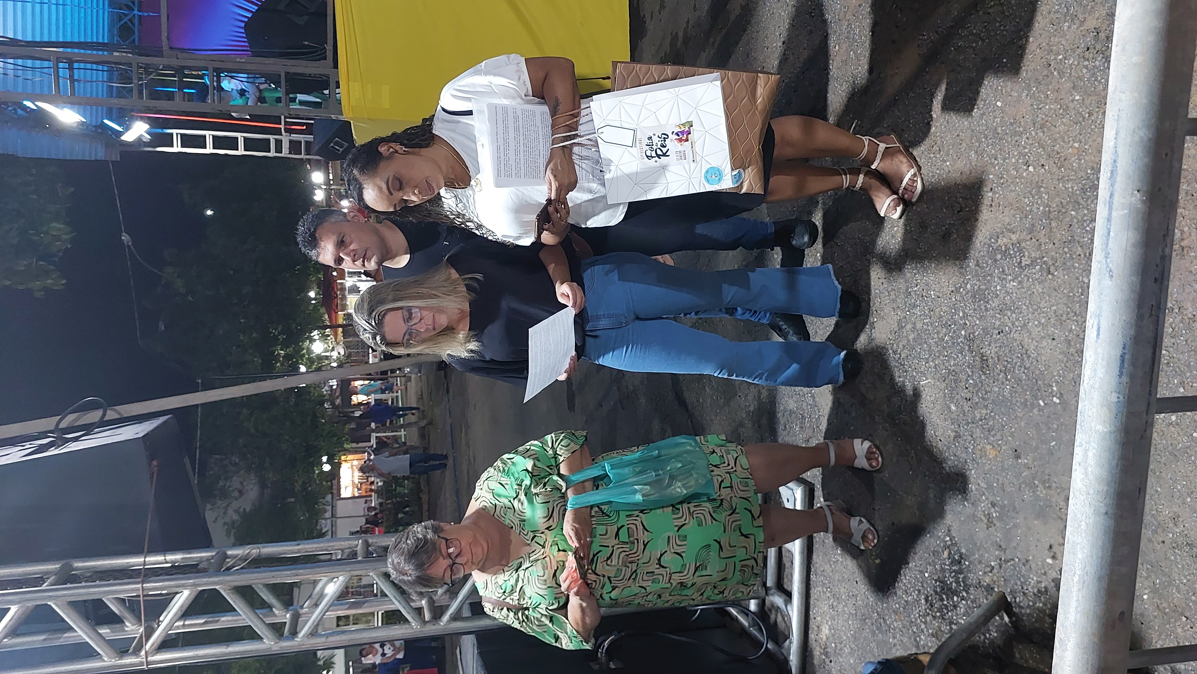 Prefeita Michele Bianchini, secretário de Governo João Vitor Pontes e diretoras de Cultura e Turismo, Micaelle Mattos e Naná Boquimpani durante a celebração