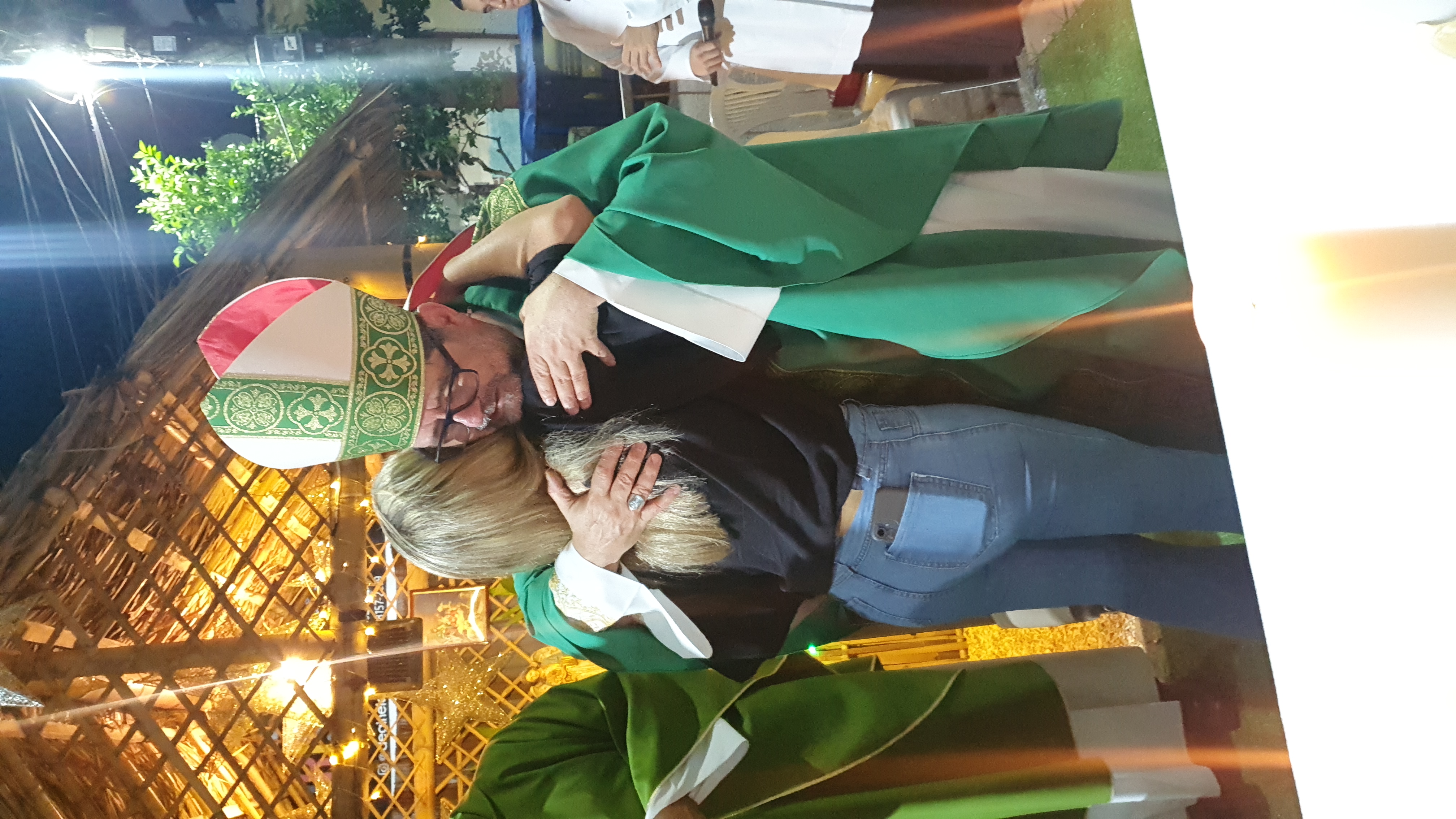O abraço comovente da prefeita Michele Bianchini no Bispo Diocesano Dom Luiz Antônio Ricci foi capturado pelo fotógrafo
