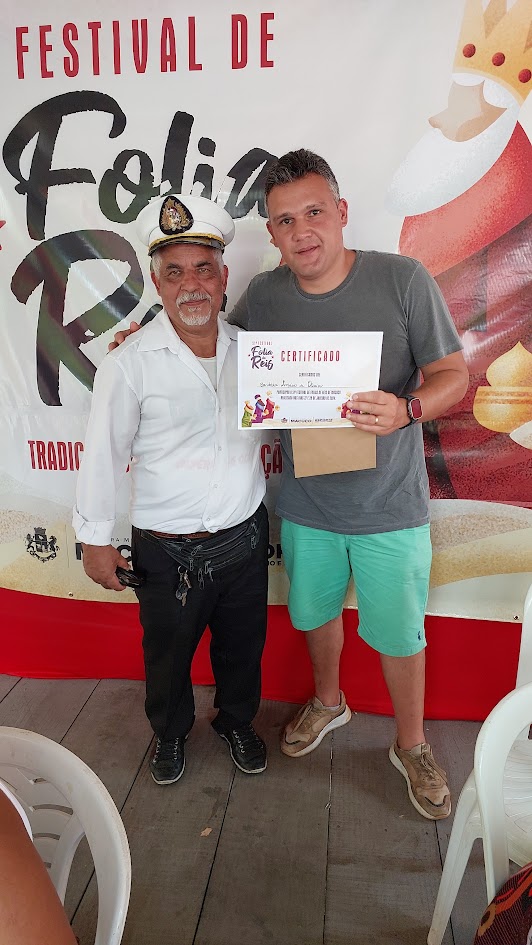 Secretário de Governo e Gestão de Macuco, João Vitor Pontes entregou um dos certificados ao Mestre Reiseiro