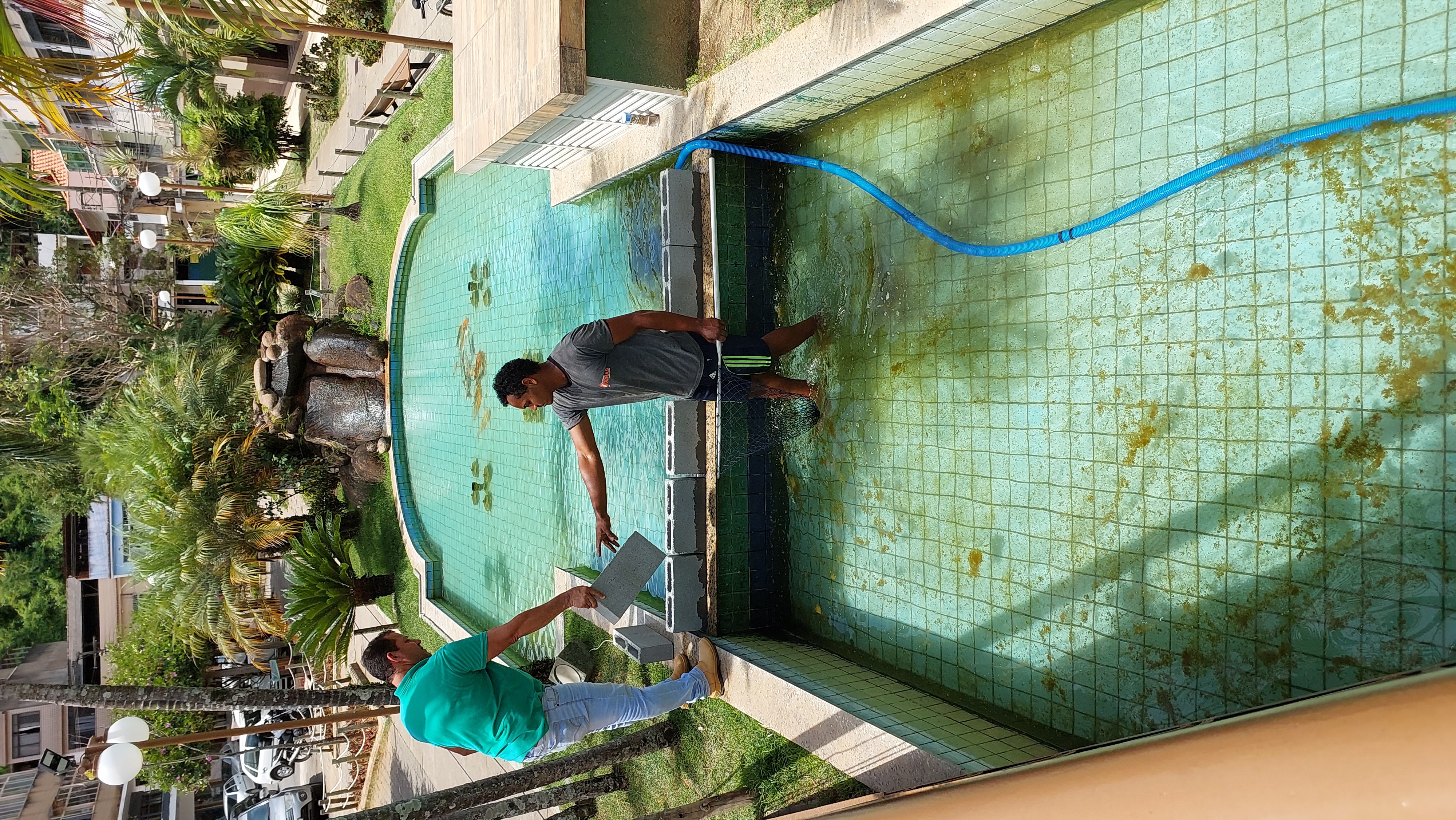 “Esvaziamos o lago de baixo para fazer a verificação. Provavelmente os azulejos devem ter trincado, estão estufando e provocando a avaria. É isso que vamos avaliar para detectar a origem, porque pode ser a raiz de uma árvore, já que existe uma amendoeira de grande porte nas proximidades”, explica Marquinhos da Obra, acrescentando que os servidores vão aproveitar para realizar uma pequena reforma.