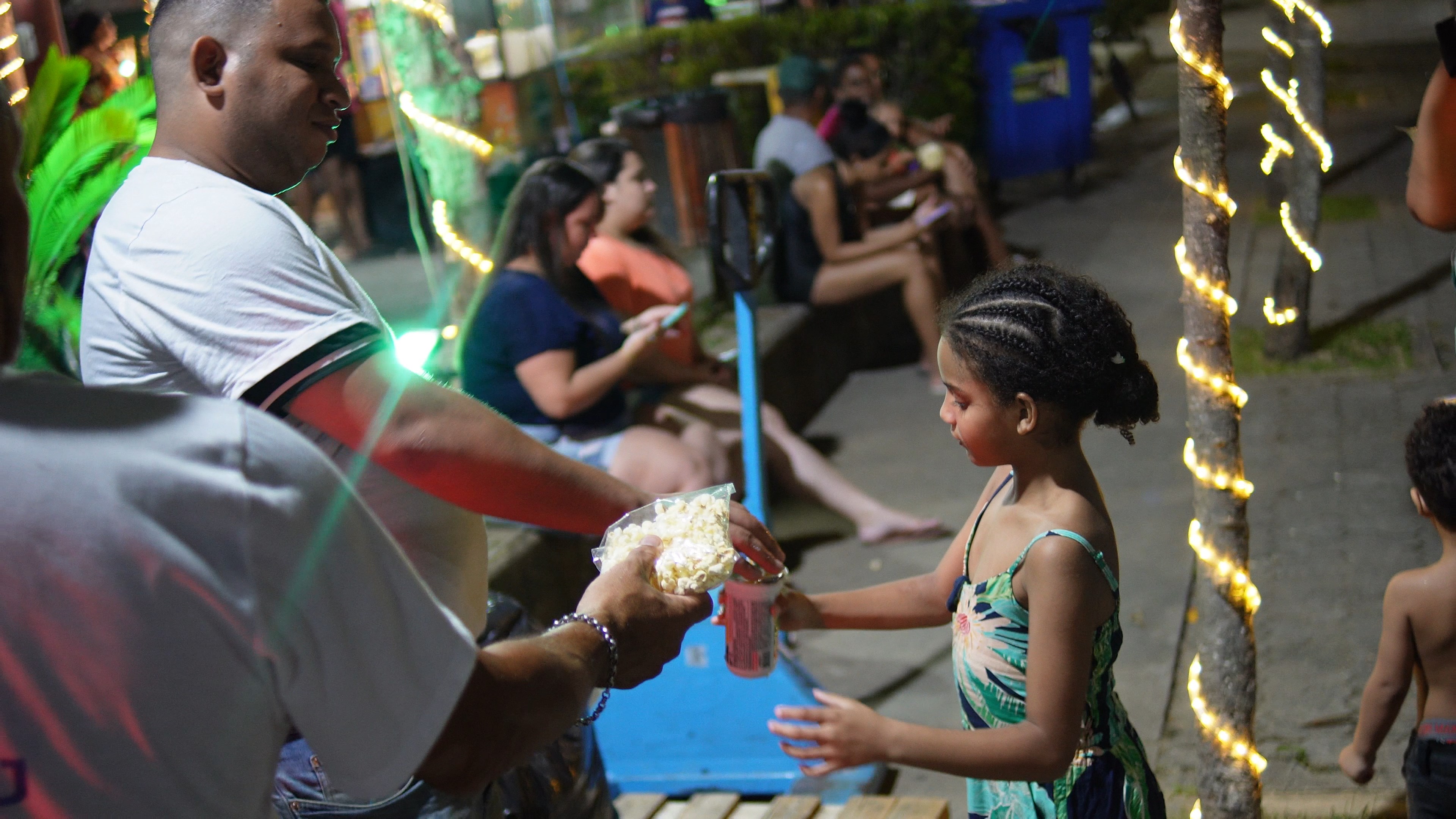 Pipoca e bebida infantil gratuitas também deram um tom a mais à animação da criançada durante a exibição do filme