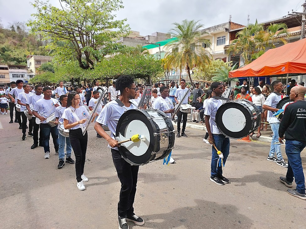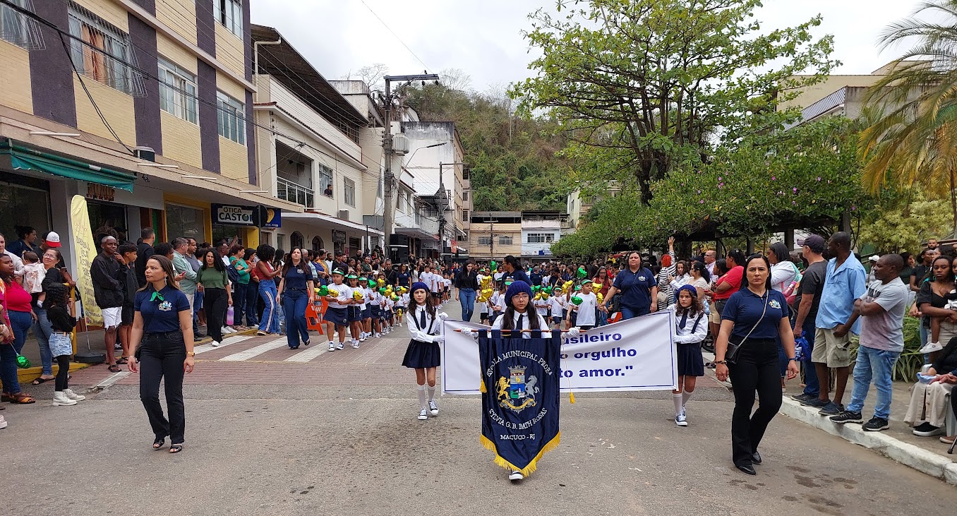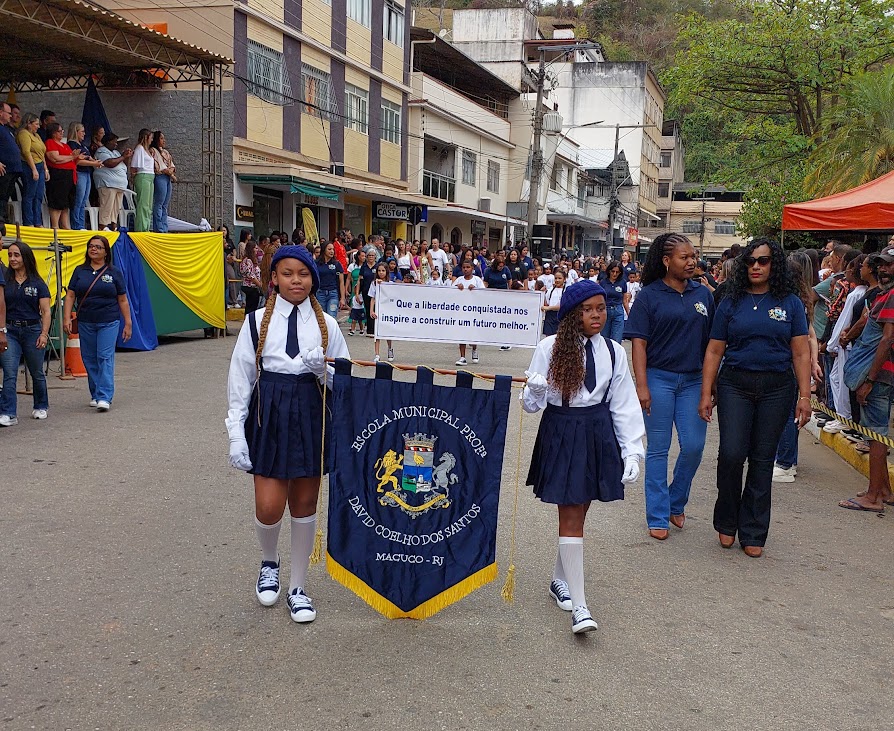 As demais escolas municipais também emocionaram bastante o público com apresentações sincronizadas e bem organizadas. A Bath Rosas, da Volta do Umbigo, celebrou o patriotismo com o lema ‘Sou brasileiro, com muito orgulho, com muito amor’, enquanto o CIEP Honório Peçanha, da Reta, apresentou a faixa ‘Que o coração continue a pulsar forte mantendo viva a chama da liberdade’. Já a David Coelho, da Barreira, reforçou a importância de construir o amanhã com responsabilidade e justiça, levando a mensagem ‘Que a liberdade conquistada nos inspire a construir um futuro melhor’.