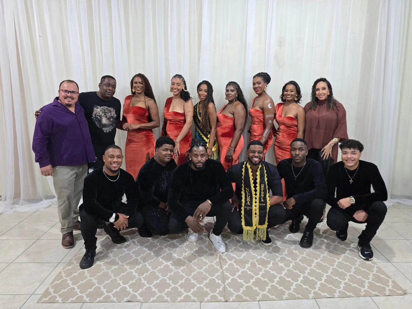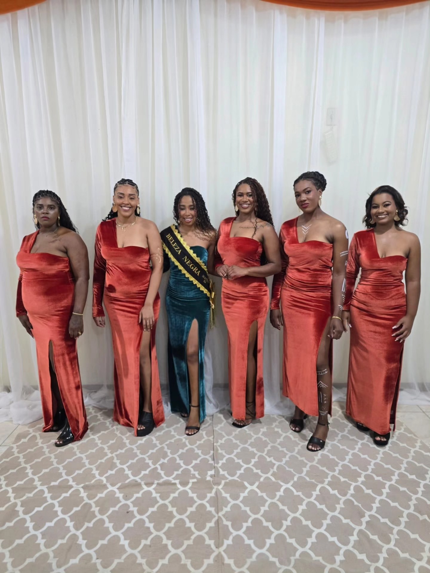 Concorrentes do sexo feminino foram fotografadas ao lado da vencedora do Beleza Negra 2024 antes da competição acirrada no palco de desfiles
