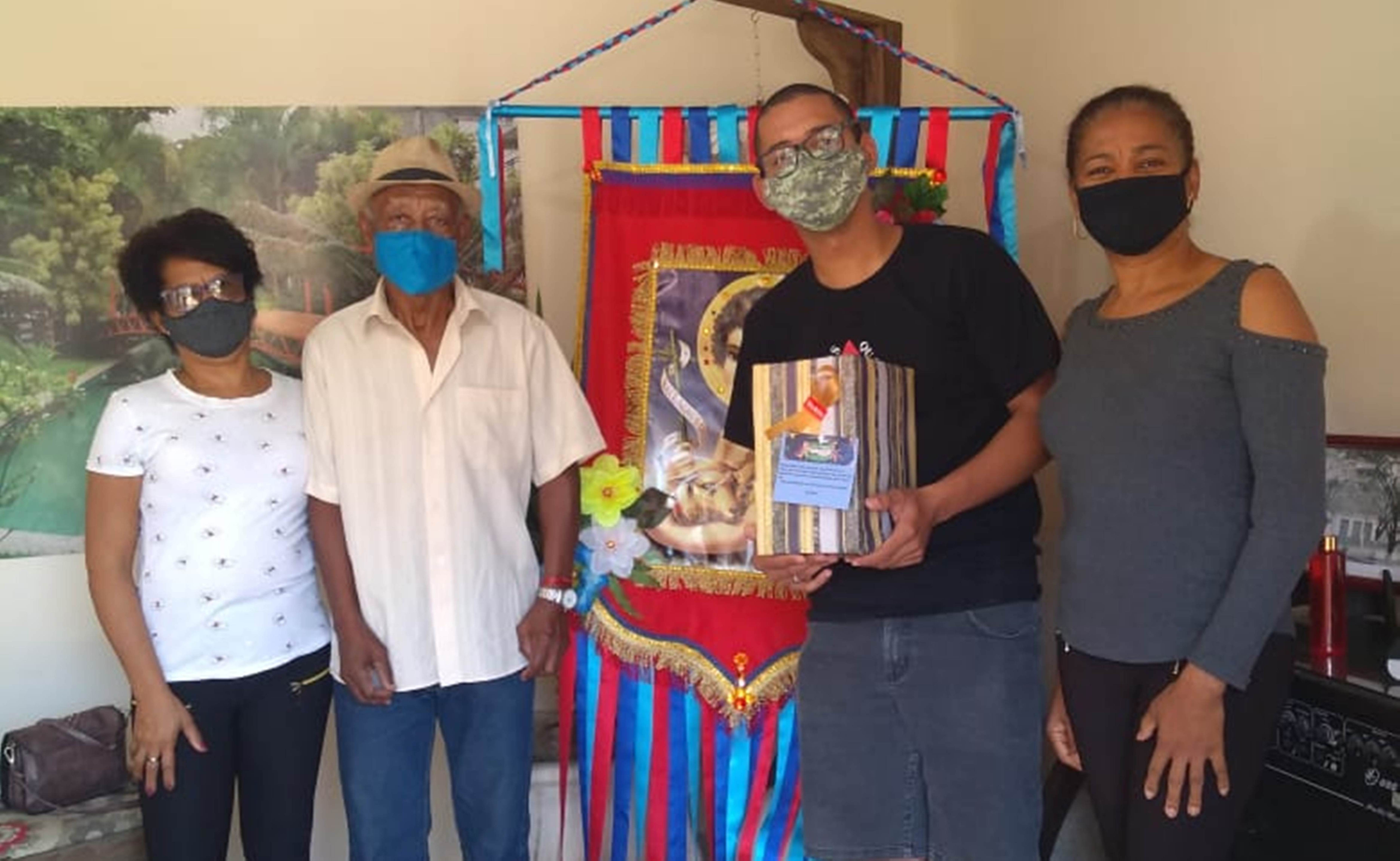 Integrantes do Departamento de Cultura fazem a entrega de mais um prêmio