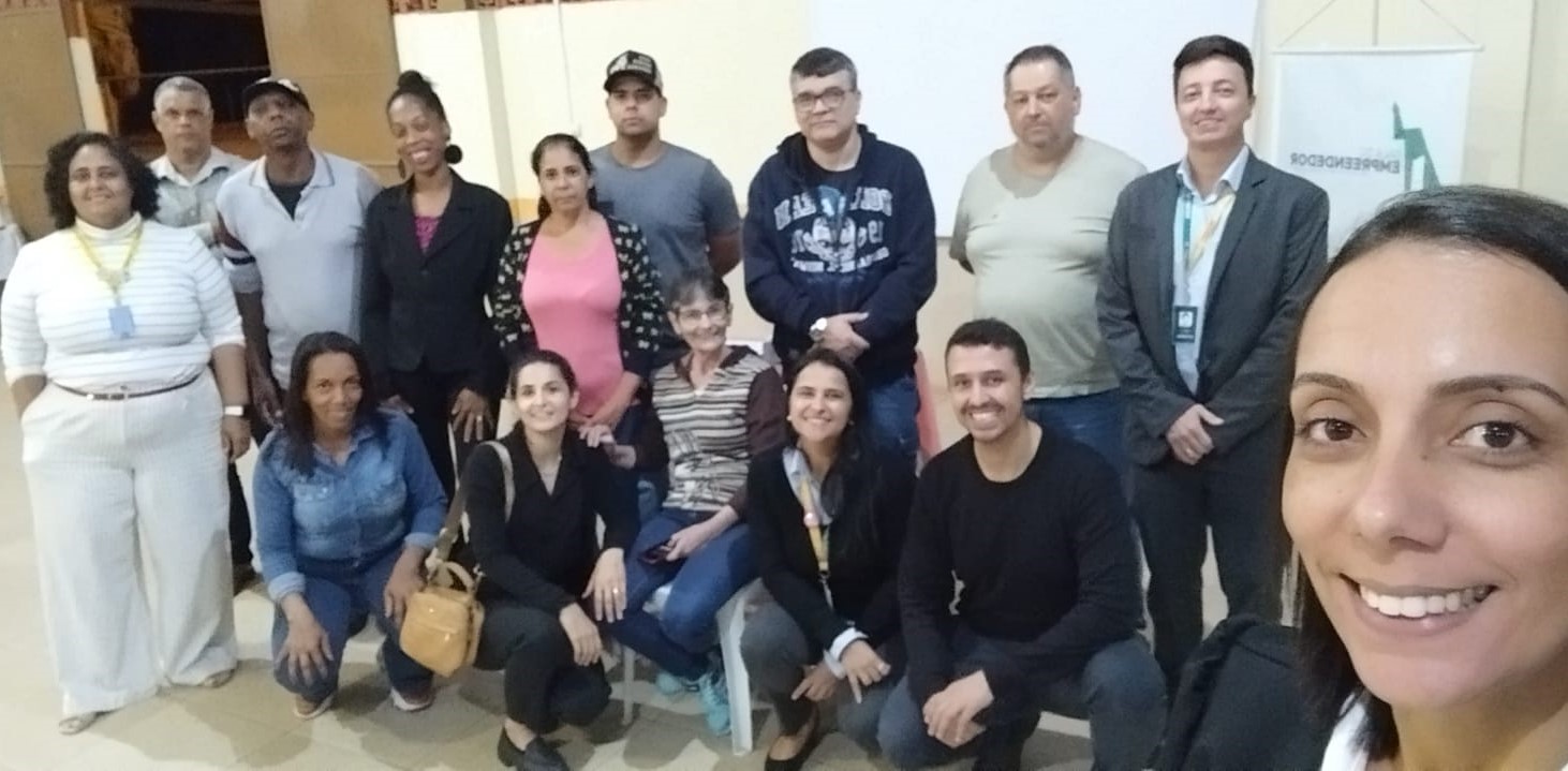 Selfie da representante da Sala do Empreendedor de Macuco com os participantes do encontro