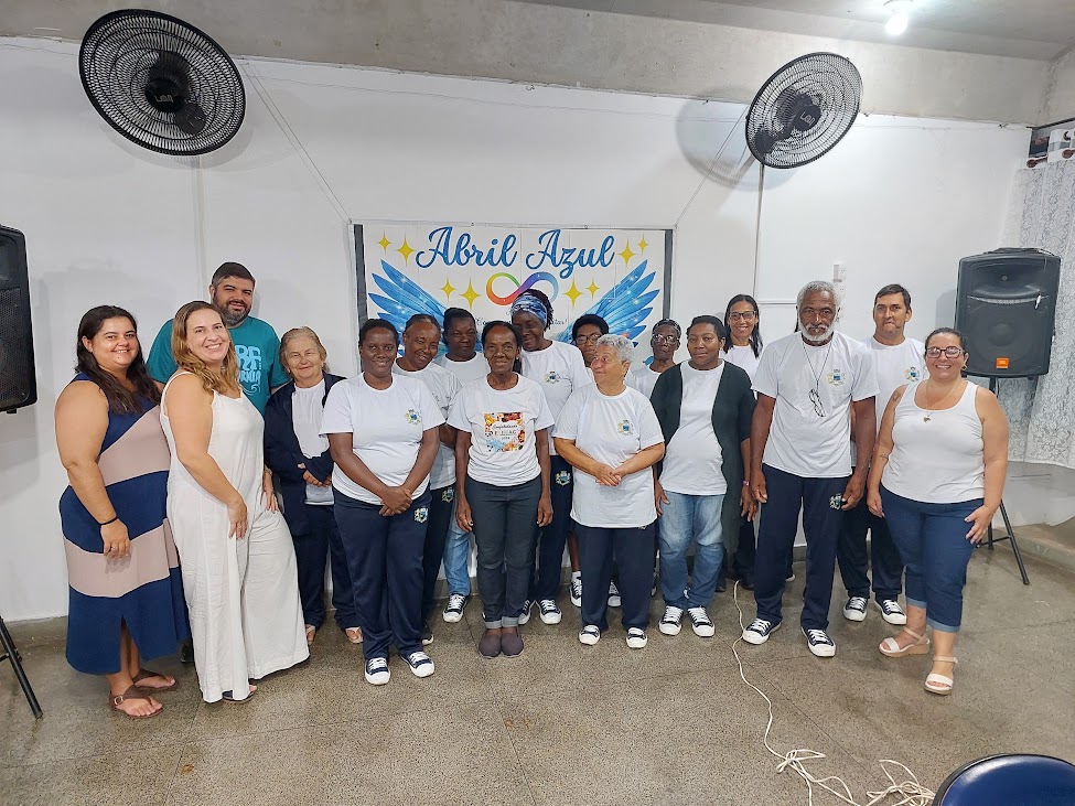 A equipe multidisciplinar do CAEEM unida às mães atípicas num registro que simboliza a força da rede de apoio em Macuco, pois juntos todos são mais fortes
