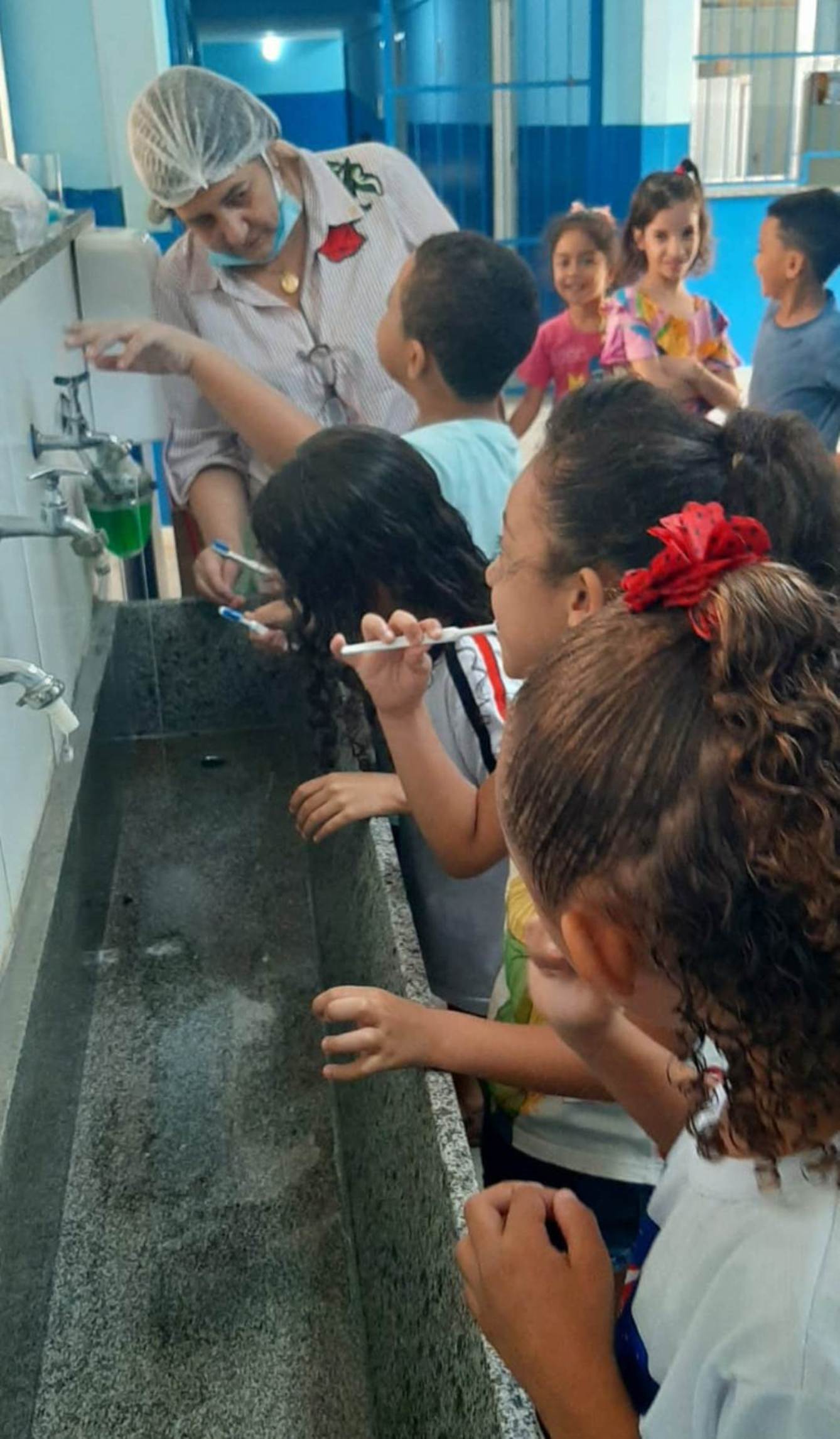 O local popularmente denominado de ‘escovódromo’ ficou repleto de estudantes durante as orientações sobre higiene bucal