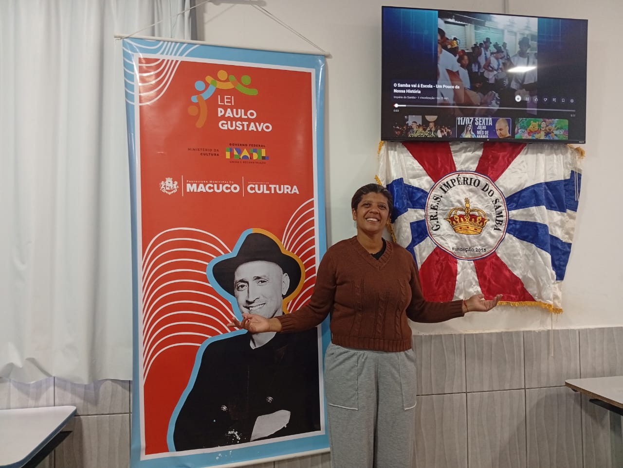 Encerrando com brilho essa etapa da prestação de contas, também no dia 11, o Grêmio Recreativo Escola de Samba Império do Samba invadiu o Colégio Estadual Farmacêutico Rodolfo Albino com todo o seu gingado e alegria. Sob a coordenação de Shirley Gonçalves, a apresentação mostrou o samba como manifestação legítima da cultura popular, envolvendo alunos e professores em uma contagiante celebração. Acompanhando cada atividade, a chefe do Departamento de Cultura, Micaelle Mattos, destacou o apoio da Prefeitura de Macuco e a importância de manter viva a cultura local através de iniciativas como essas.