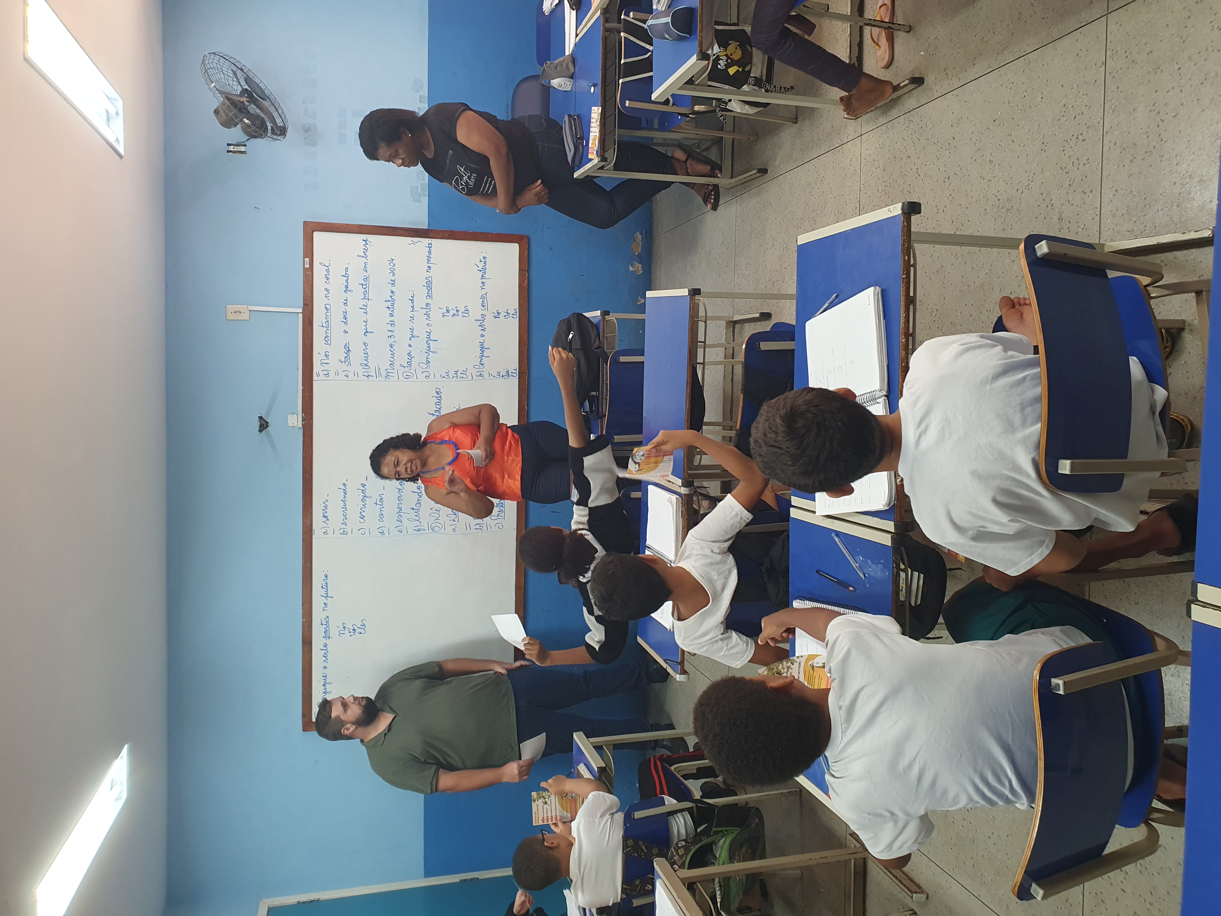 Mais uma das visitações da bióloga Leila Brito, dessa vez conversando com estudantes da escola Silvia Bath Rosas, na Volta do Umbigo