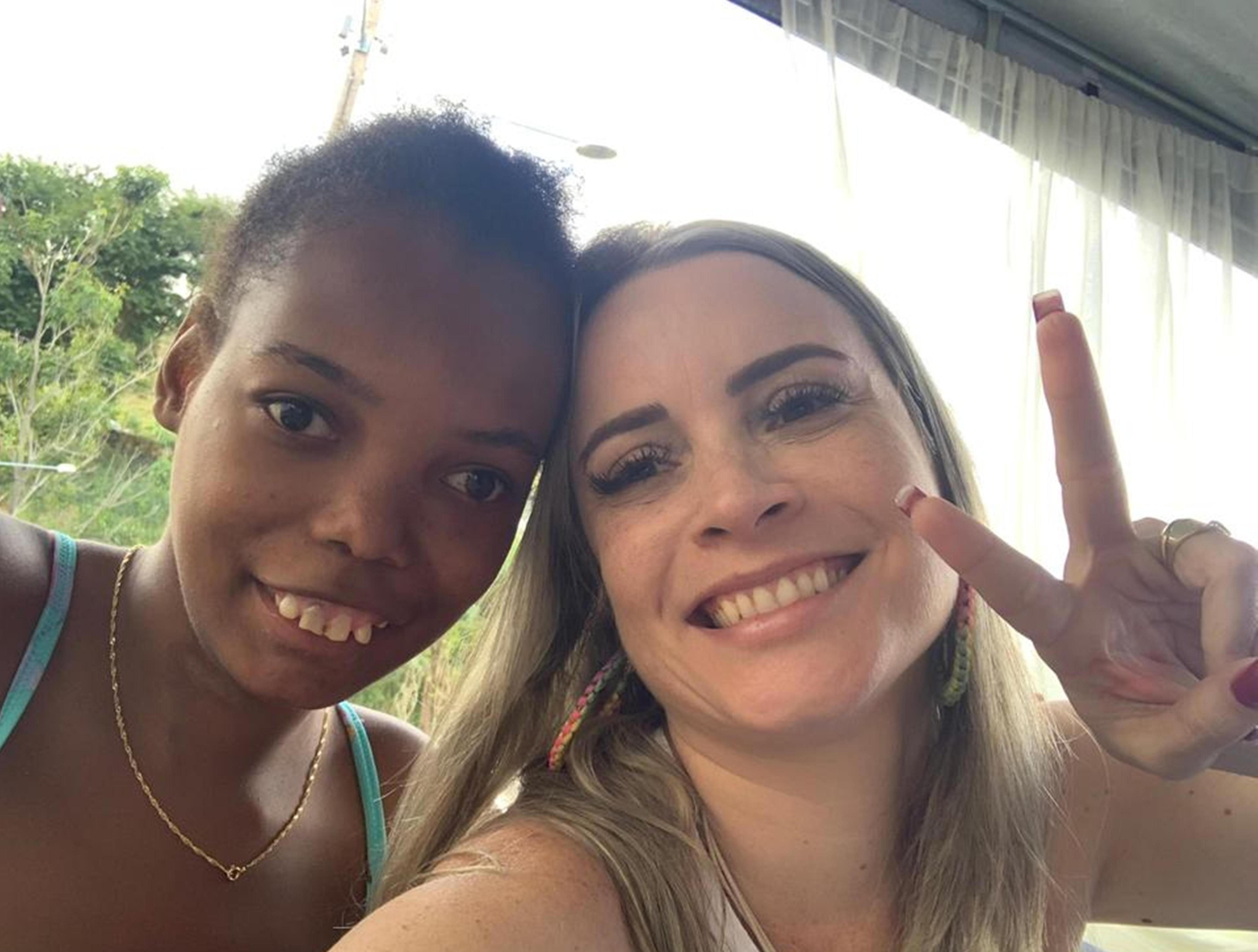 Subsecretária Marlise Quintana numa selfie com uma das meninas no sábado
