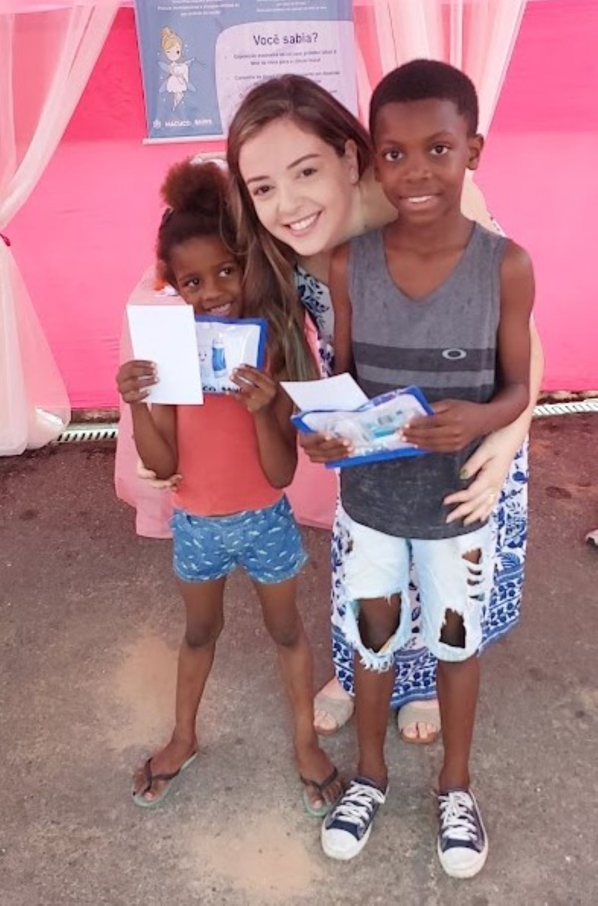 Imagem confirma a relação de respeito e carinho entre os profissionais de odontologia e as crianças macuquenses