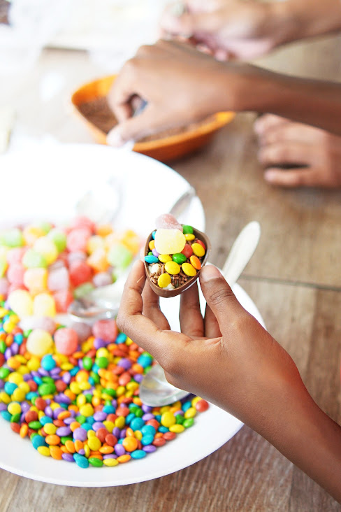 Em cada ovinho de chocolate feito pela criançada, uma arte bem pensada e cheia de criatividade