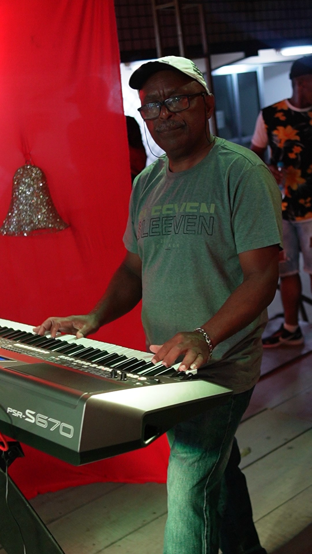 Teclado ritmando a dança na rua e deixando o público feliz com a qualidade do espetáculo proporcionado pelo Forró União