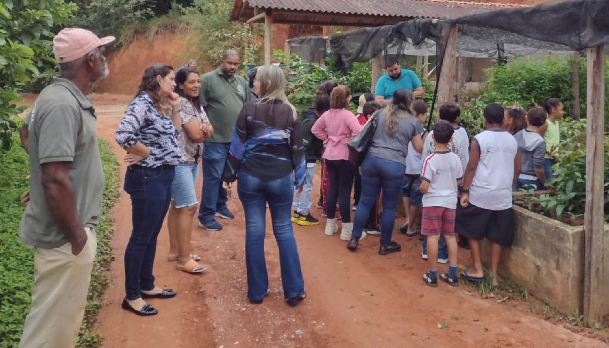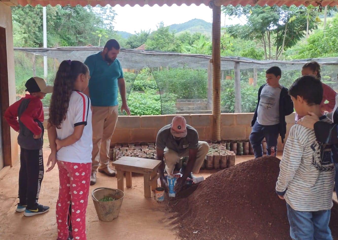 Garotada se sentiu bem à vontade percorrendo o espaço destinado à produção de mudas no Horto Municipal de Macuco