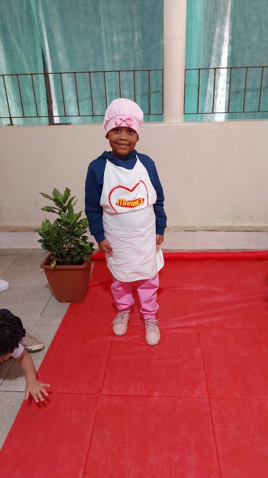 Tomara que os quitutes a serem criados pela pequena cozinheira estejam tão lindos em suas apresentações quanto a pequena aluna