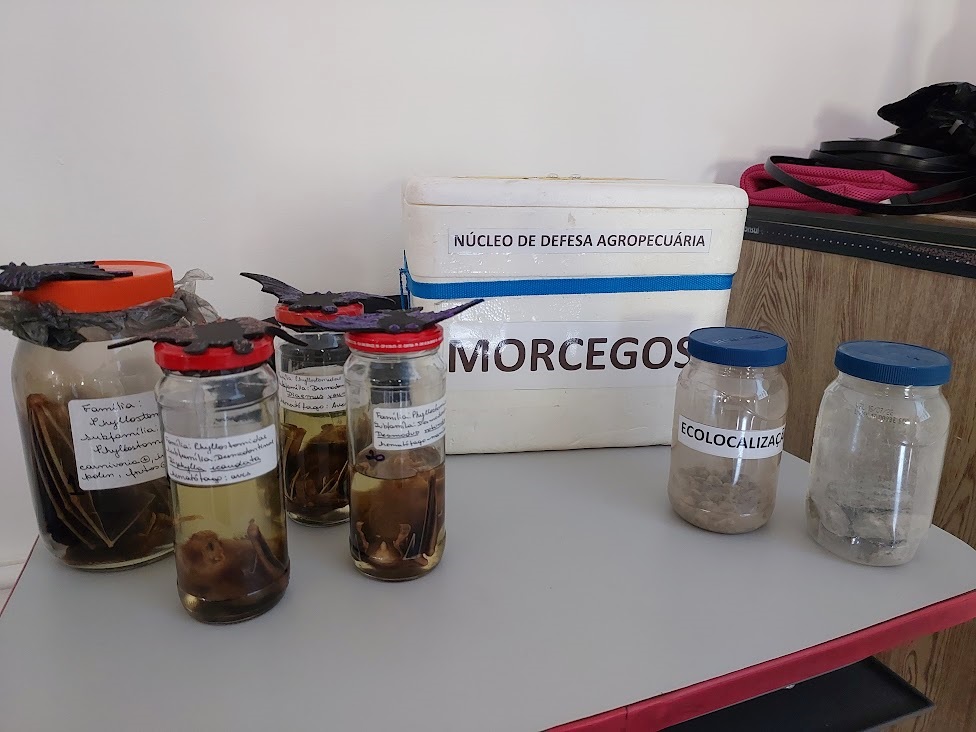 Amostras de morcegos foram expostas, exemplificando parte dos conhecimentos compartilhados sobre o combate à raiva em herbívoros