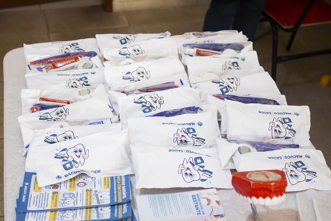 A equipe de odontologia da Secretaria de Saúde de Macuco também distribuiu kits de limpeza bucal para a garotada