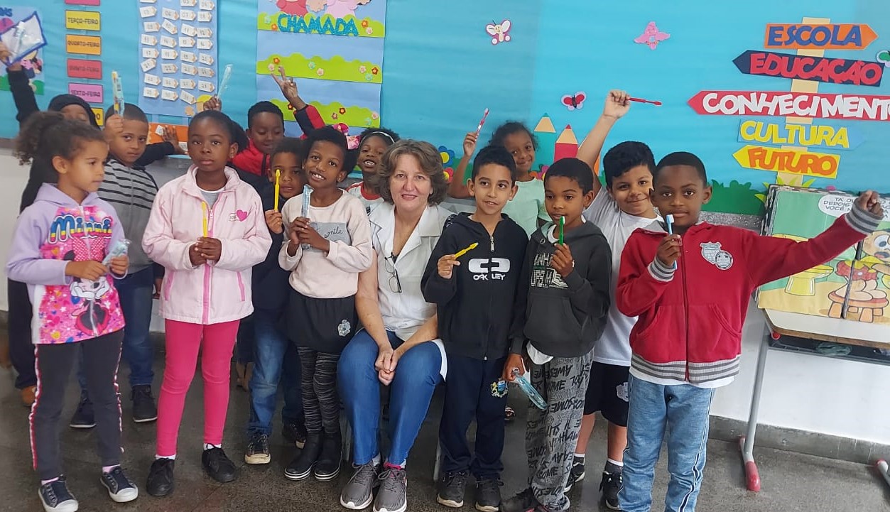 Escovas foram utilizadas imediatamente pelos alunos após receberem os kits